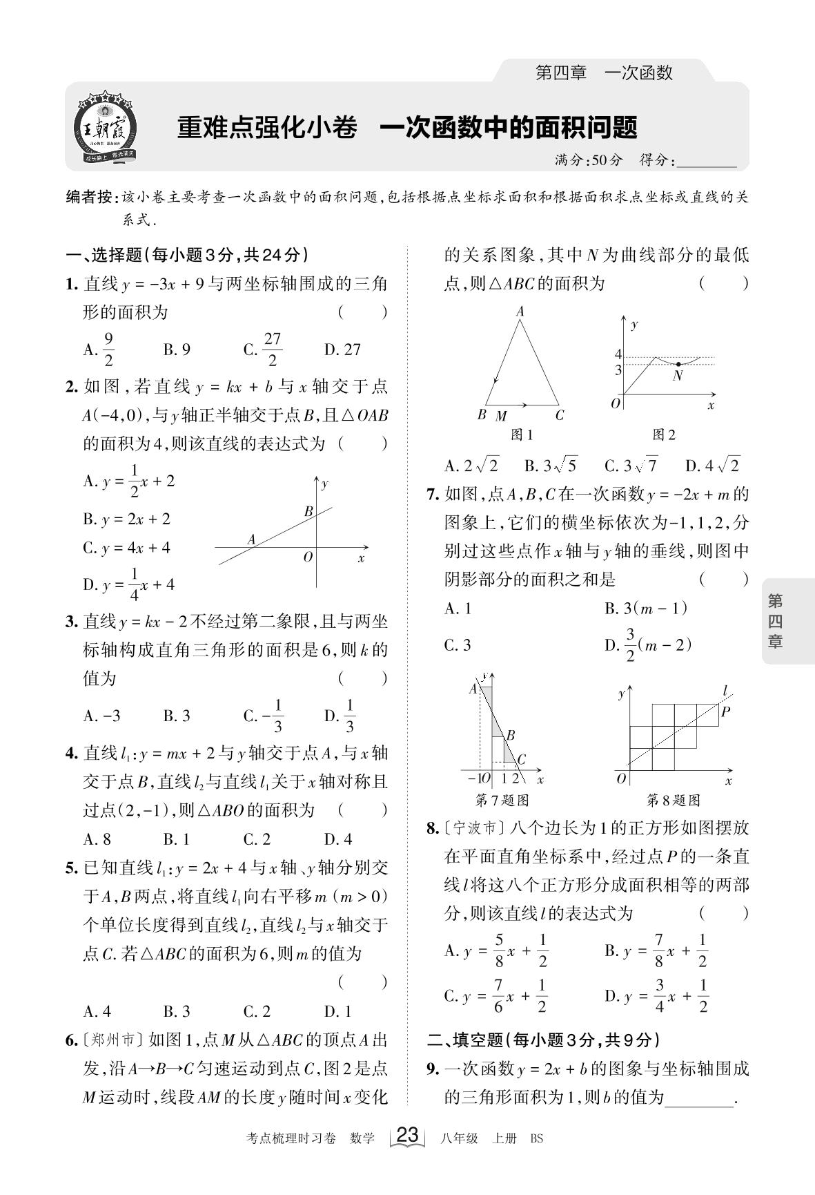 2023上册八年级数学北师版 第四章 重难点强化小卷 一次函数中的面积问题