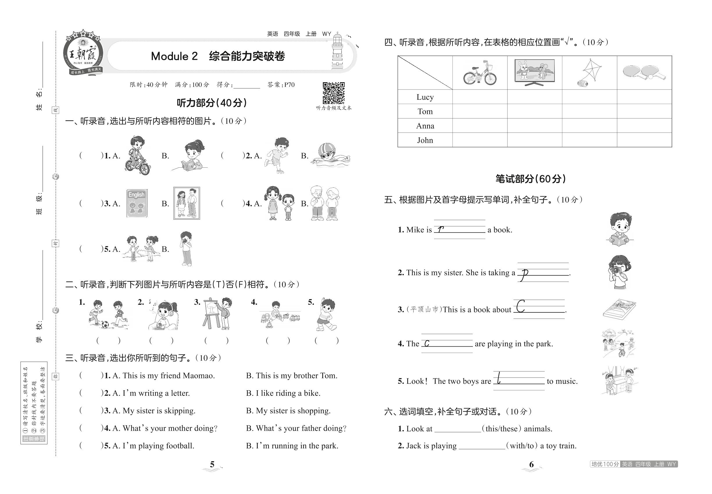 2023上册四年级英语外研版 Module 2 综合能力突破卷