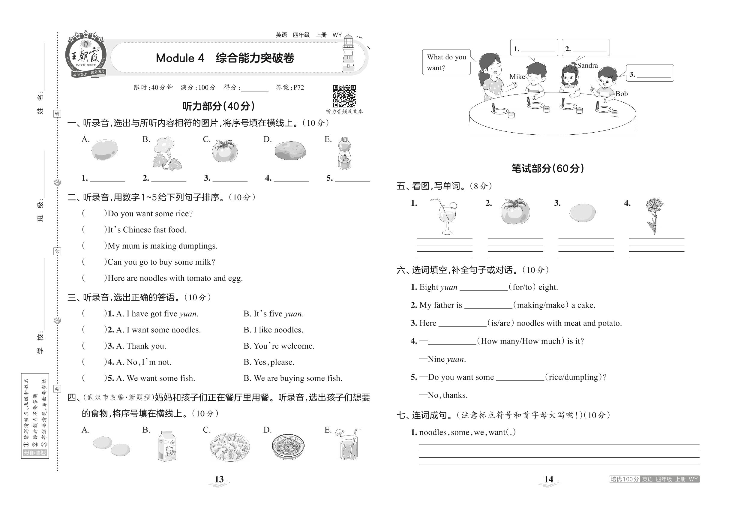 2023上册四年级英语外研版 Module 4 综合能力突破卷