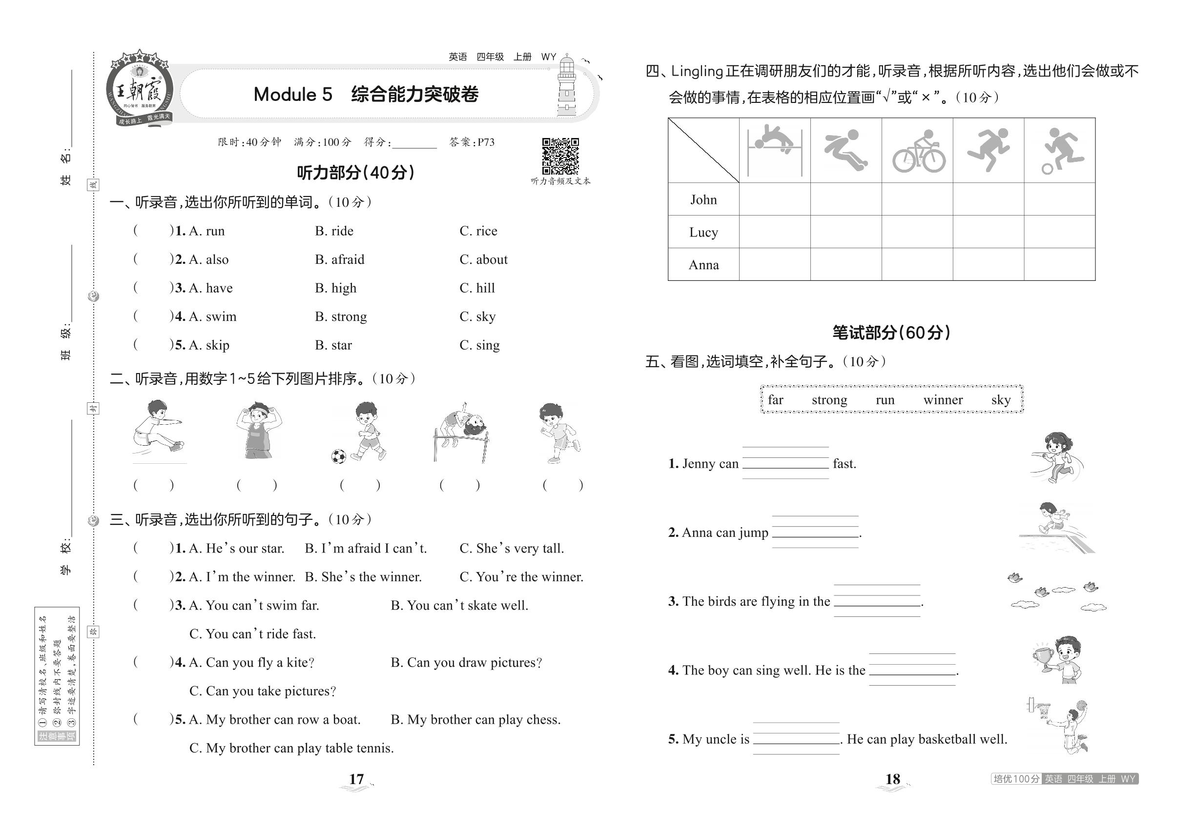 2023上册四年级英语外研版 Module 5 综合能力突破卷
