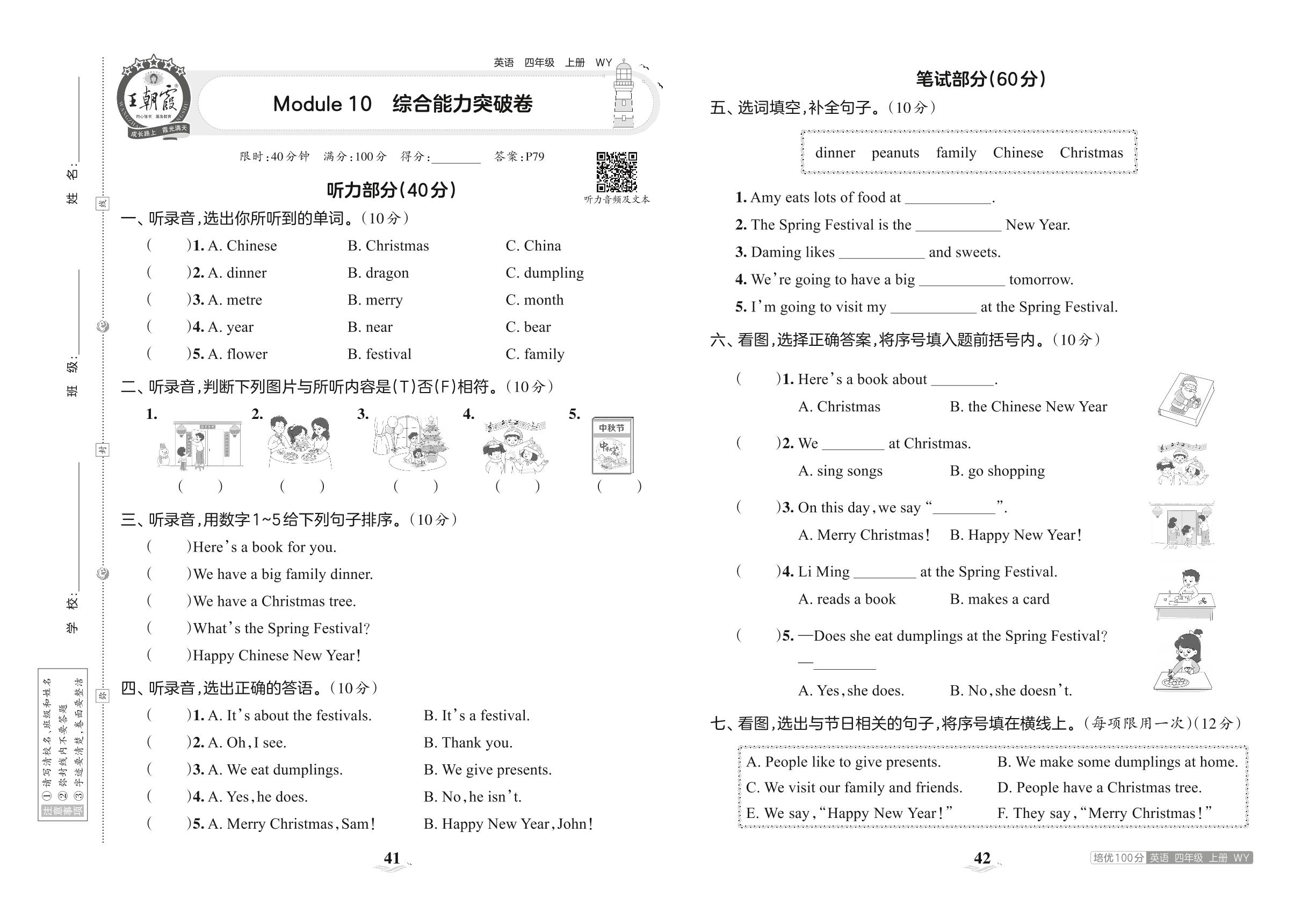 2023上册四年级英语外研版 Module 10 综合能力突破卷