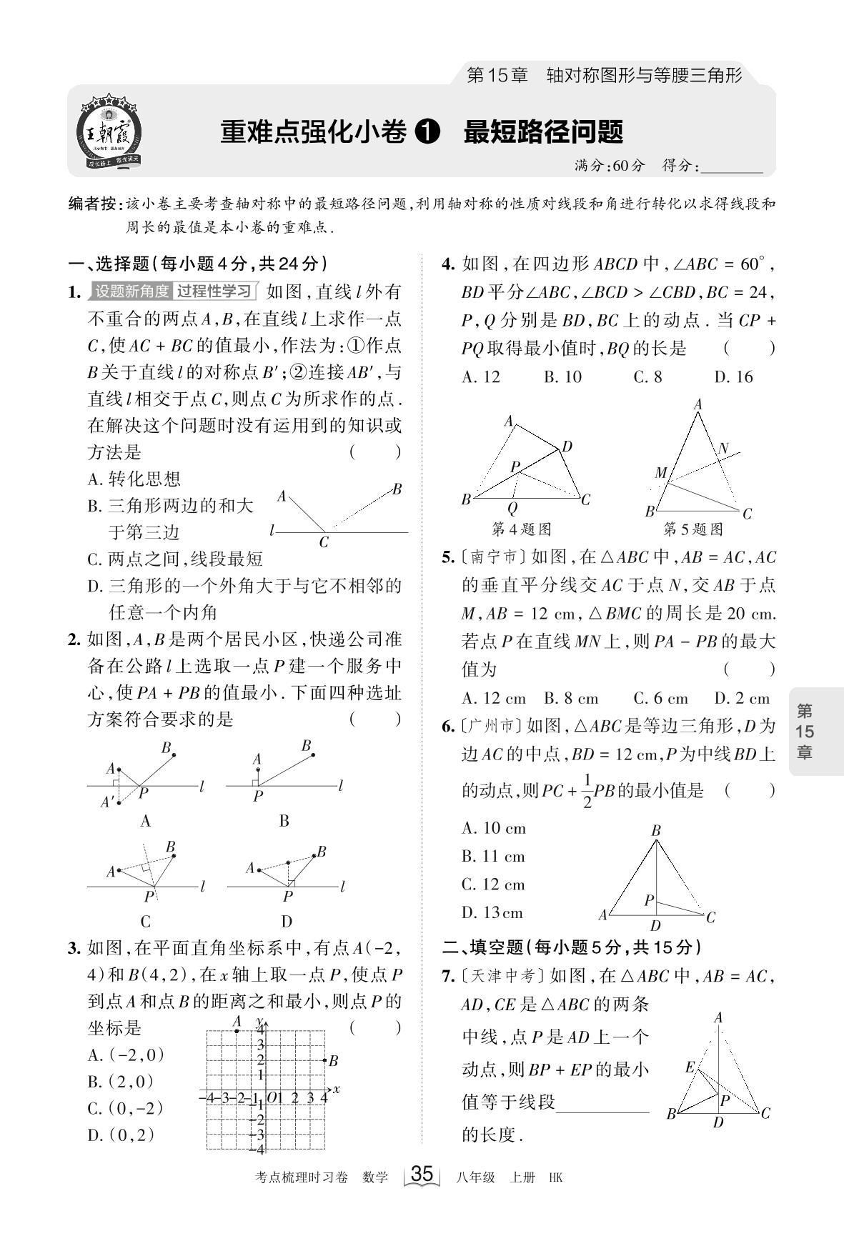 2023上册八年级数学沪科版 第15章 重难点强化小卷1 最短路径问题