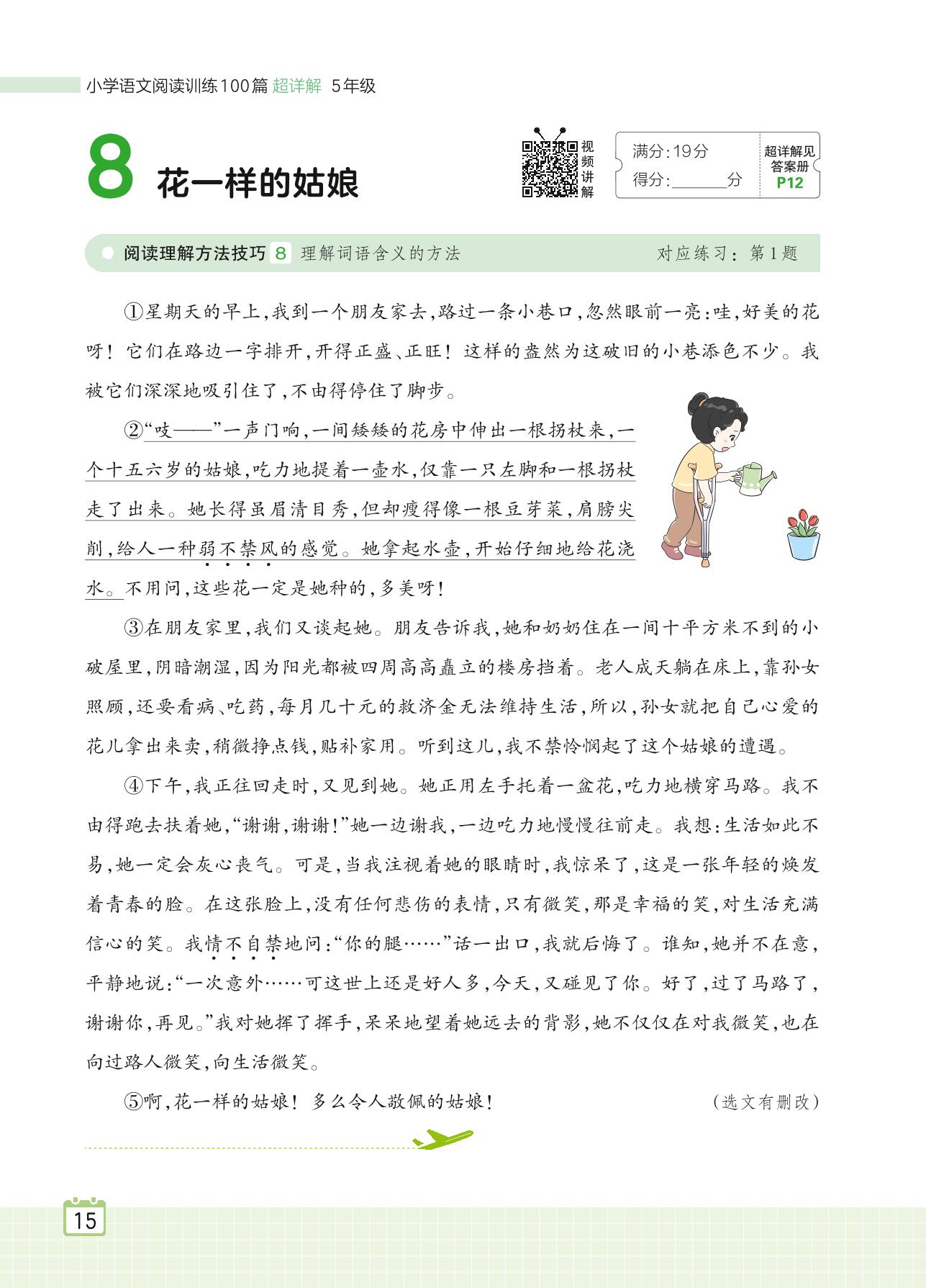 2024全一册五年级语文人教版 专题一 写人 8 花一样的姑娘
