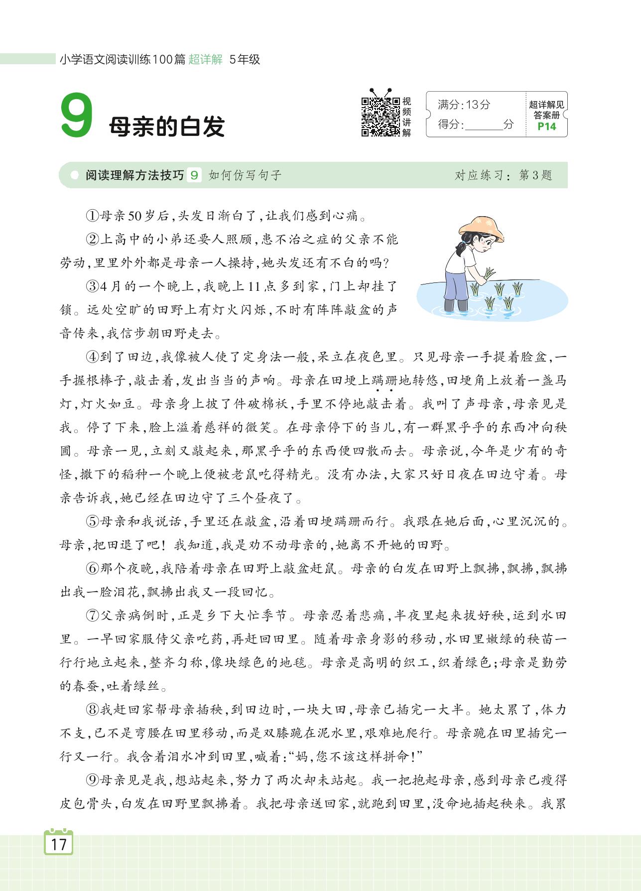 2024全一册五年级语文人教版 专题一 写人 9 母亲的白发