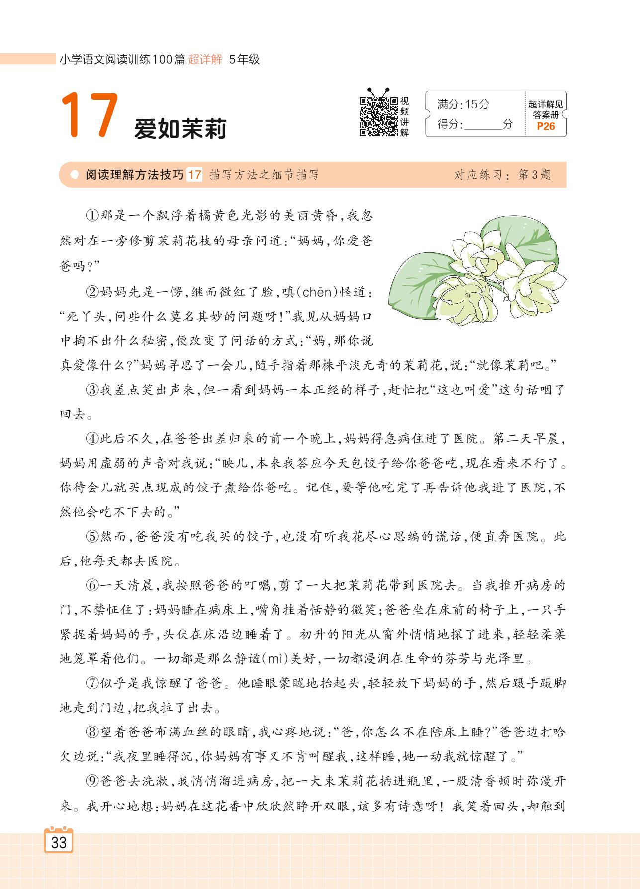 2024全一册五年级语文人教版 专题二 记事 17 爱如茉莉