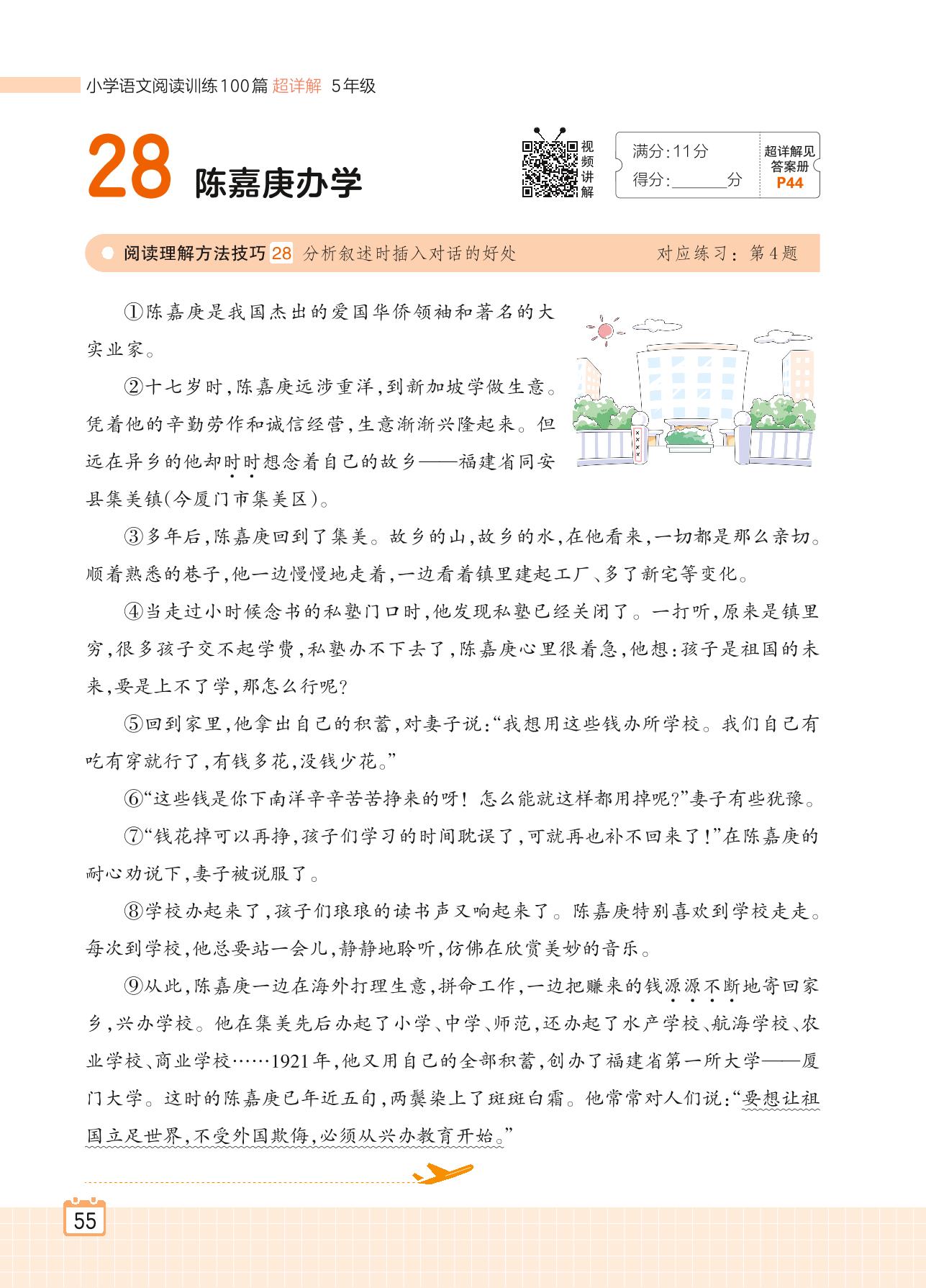 2024全一册五年级语文人教版 专题二 记事 28 陈嘉庚办学