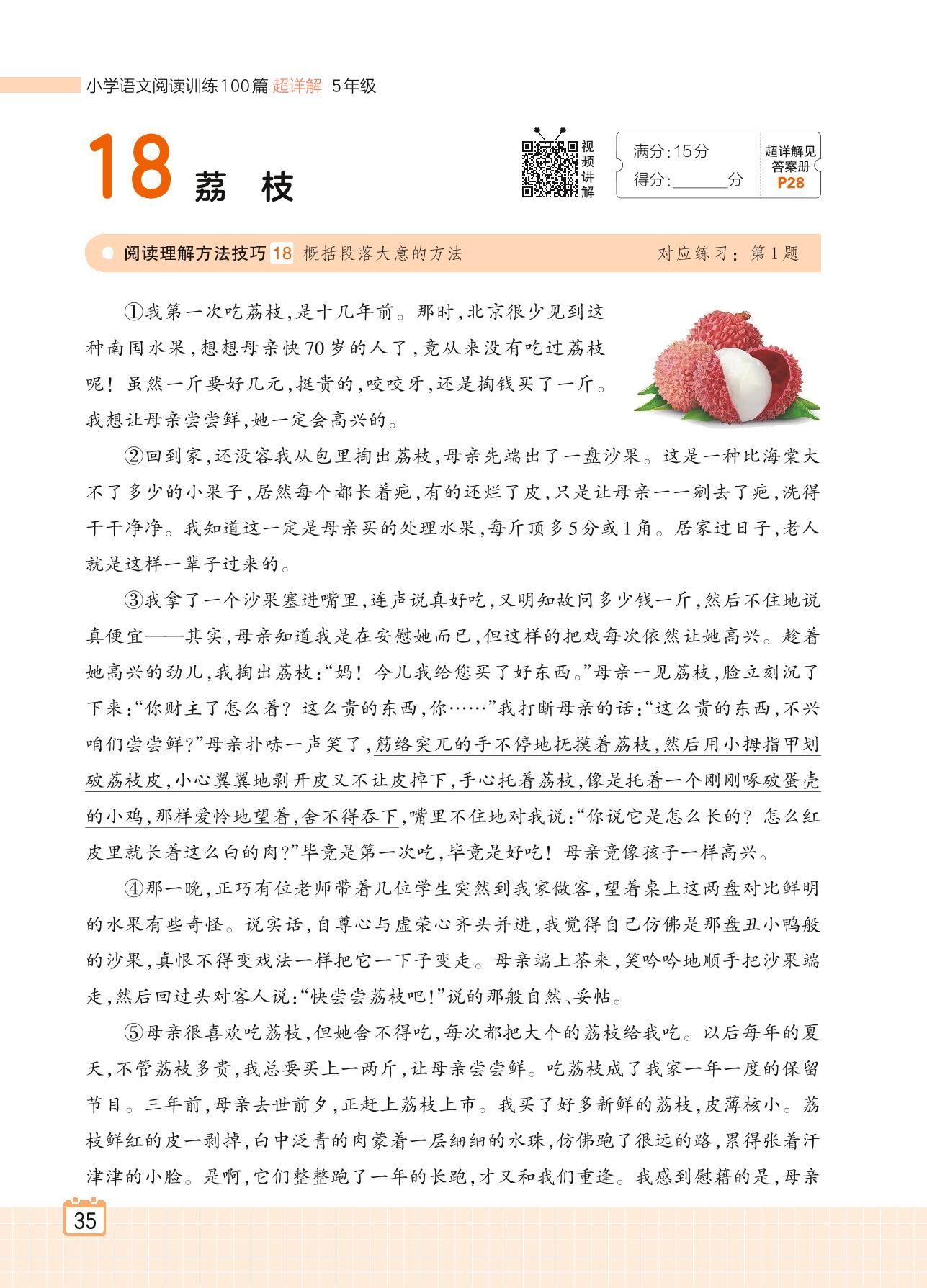 2024全一册五年级语文人教版 专题二 记事 18 荔枝