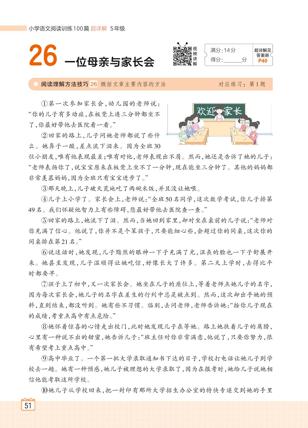 2024全一册五年级语文人教版 专题二 记事 26 一位母亲与家长会