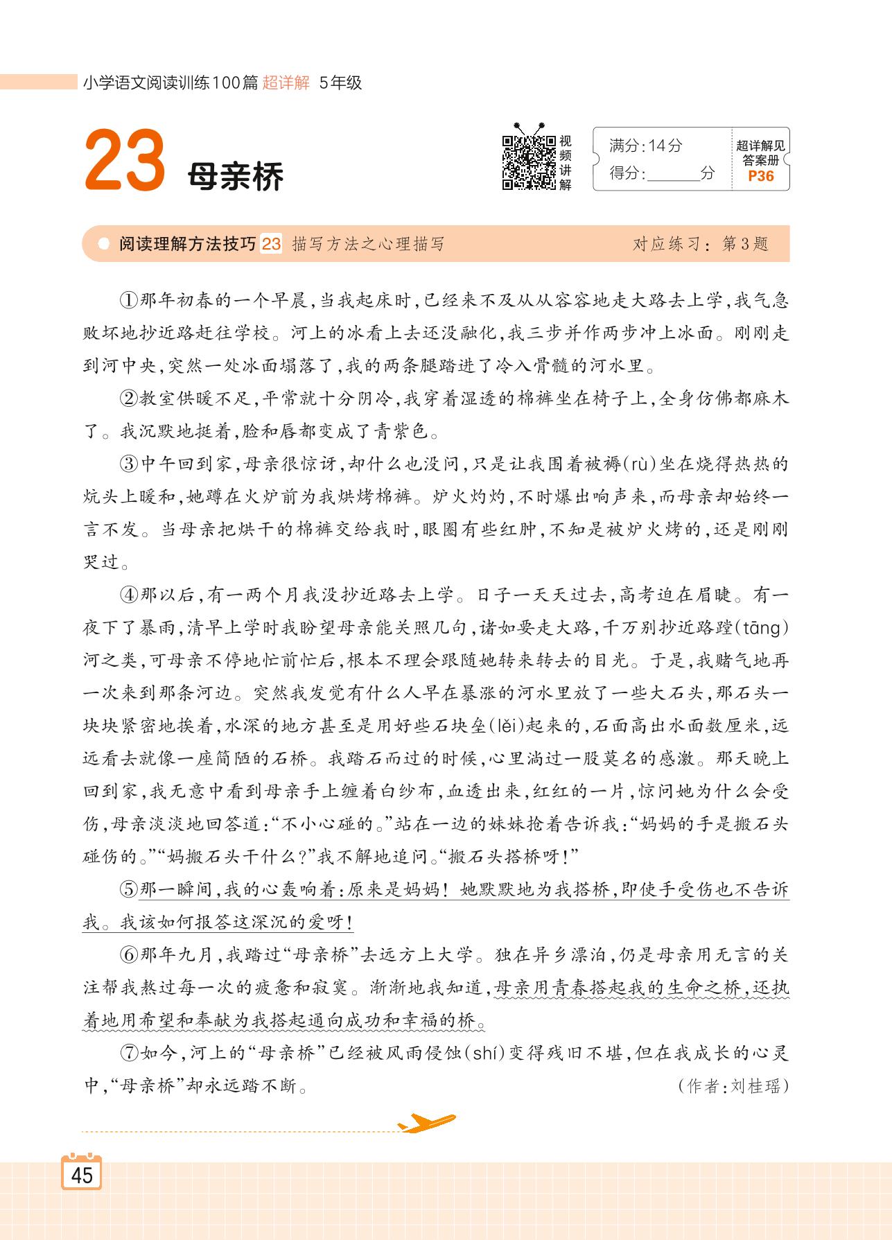 2024全一册五年级语文人教版 专题二 记事 23 母亲桥