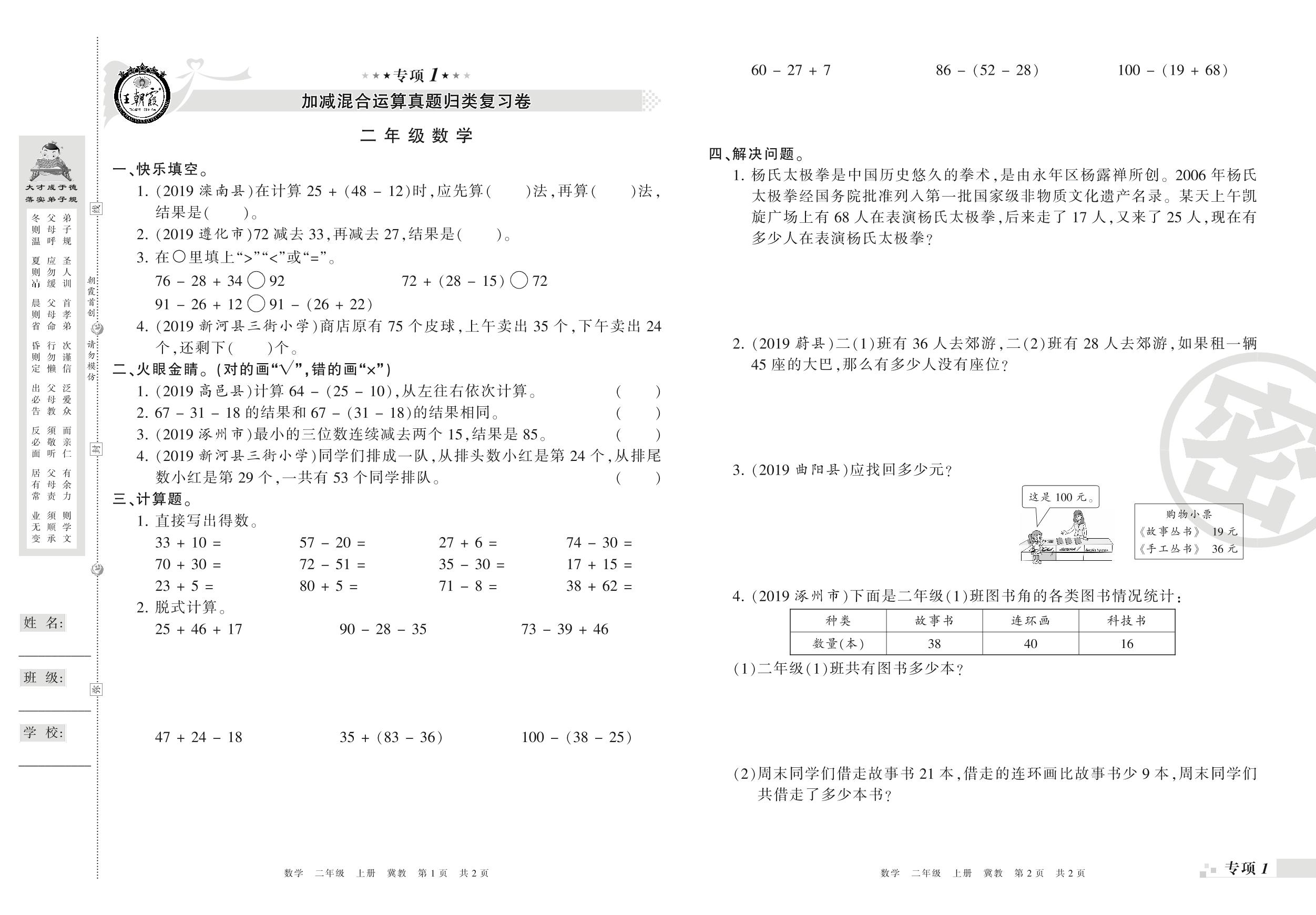 王朝霞期末专项卷——加减混合运算、表内乘法和除法真题归类复习二年级上册数学(冀教版)_R21080392745【0】