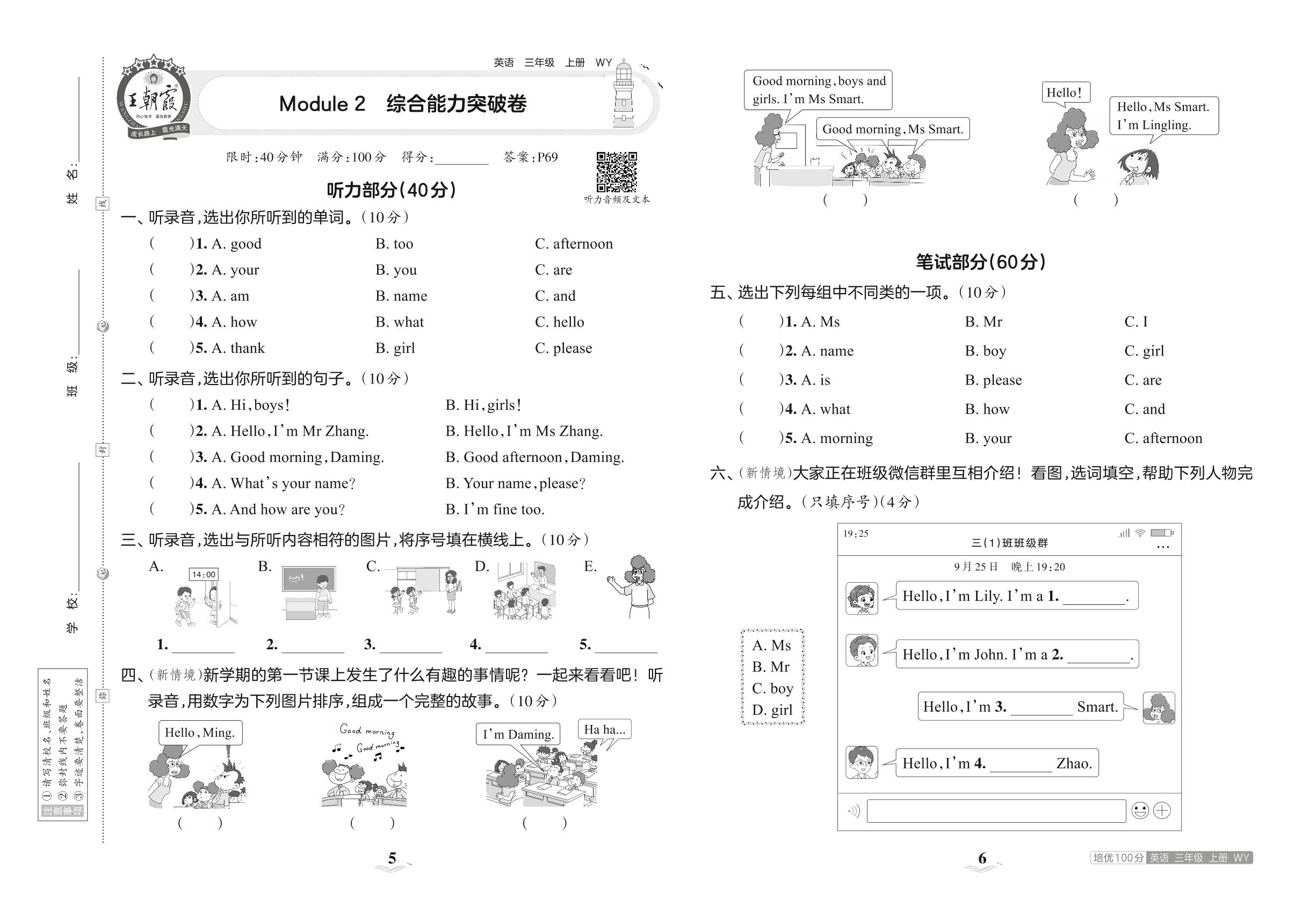 2023上册三年级英语外研版 Module 2 综合能力突破卷