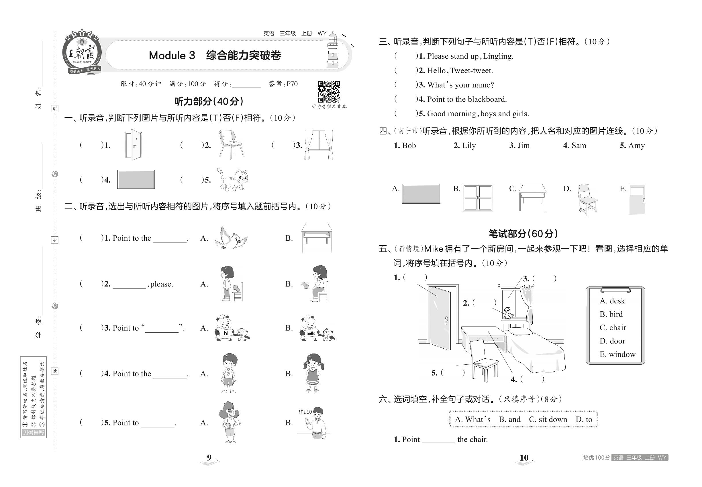 2023上册三年级英语外研版 Module 3 综合能力突破卷