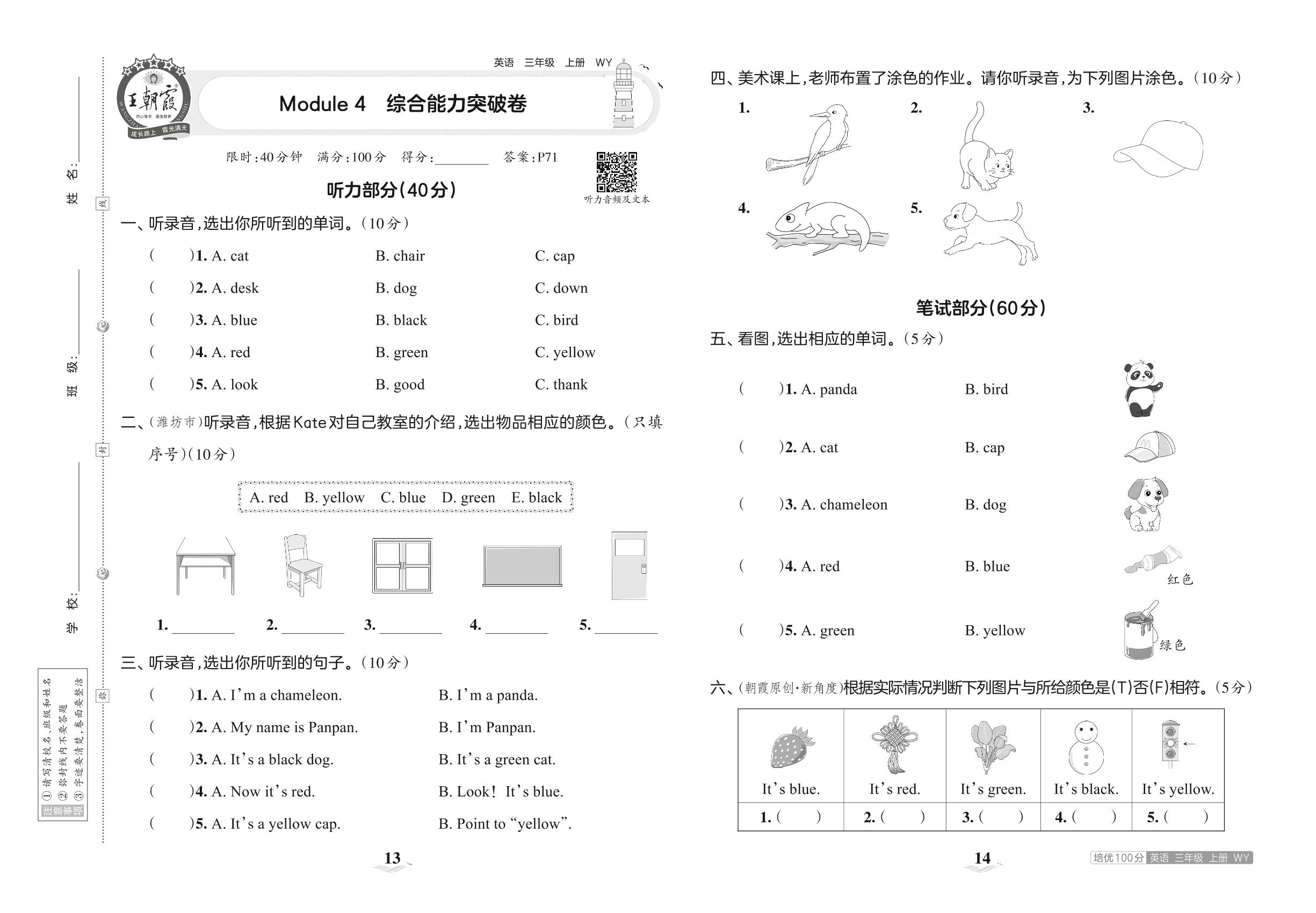 2023上册三年级英语外研版 Module 4 综合能力突破卷