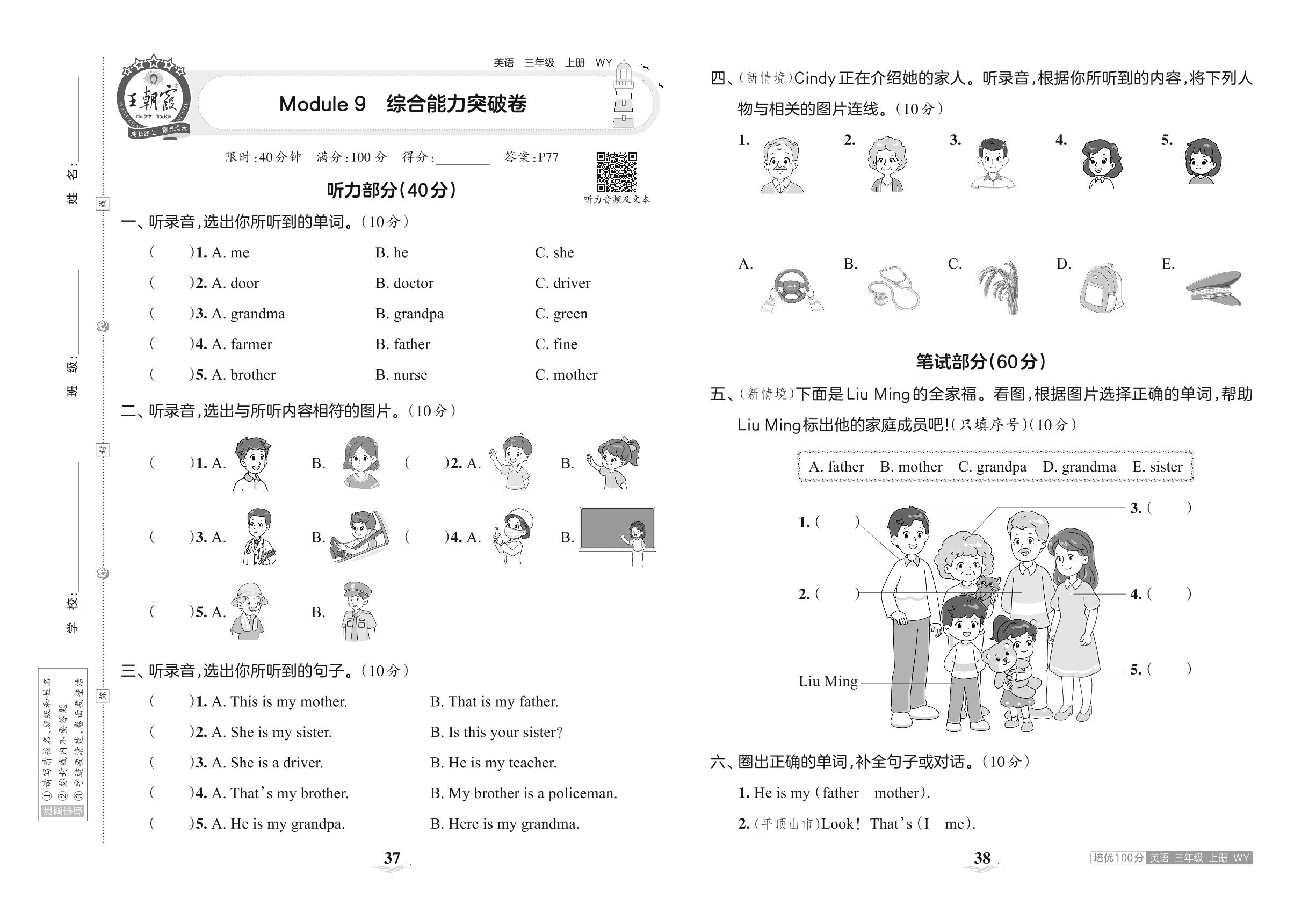 2023上册三年级英语外研版 Module 9 综合能力突破卷