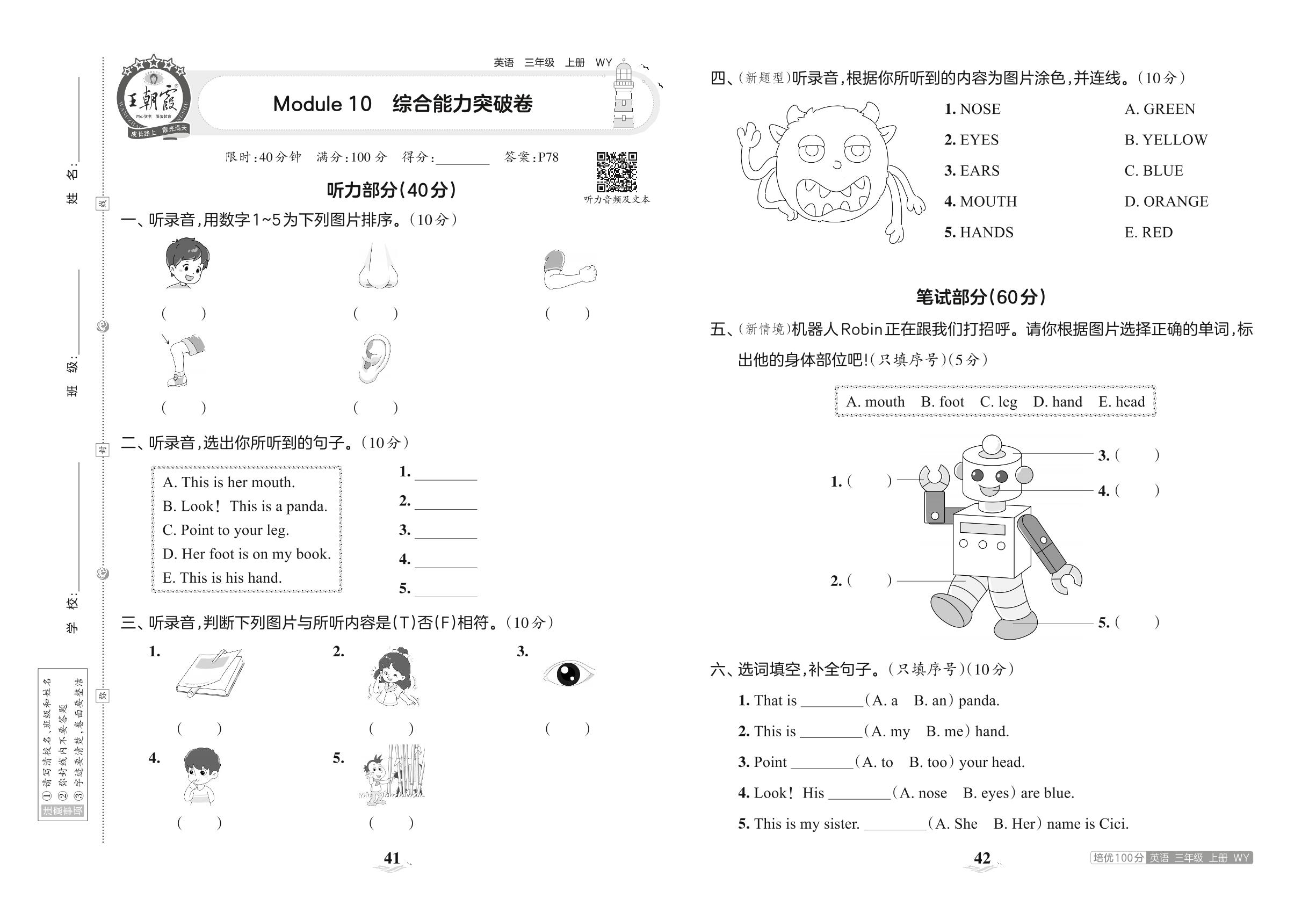 2023上册三年级英语外研版 Module 10 综合能力突破卷