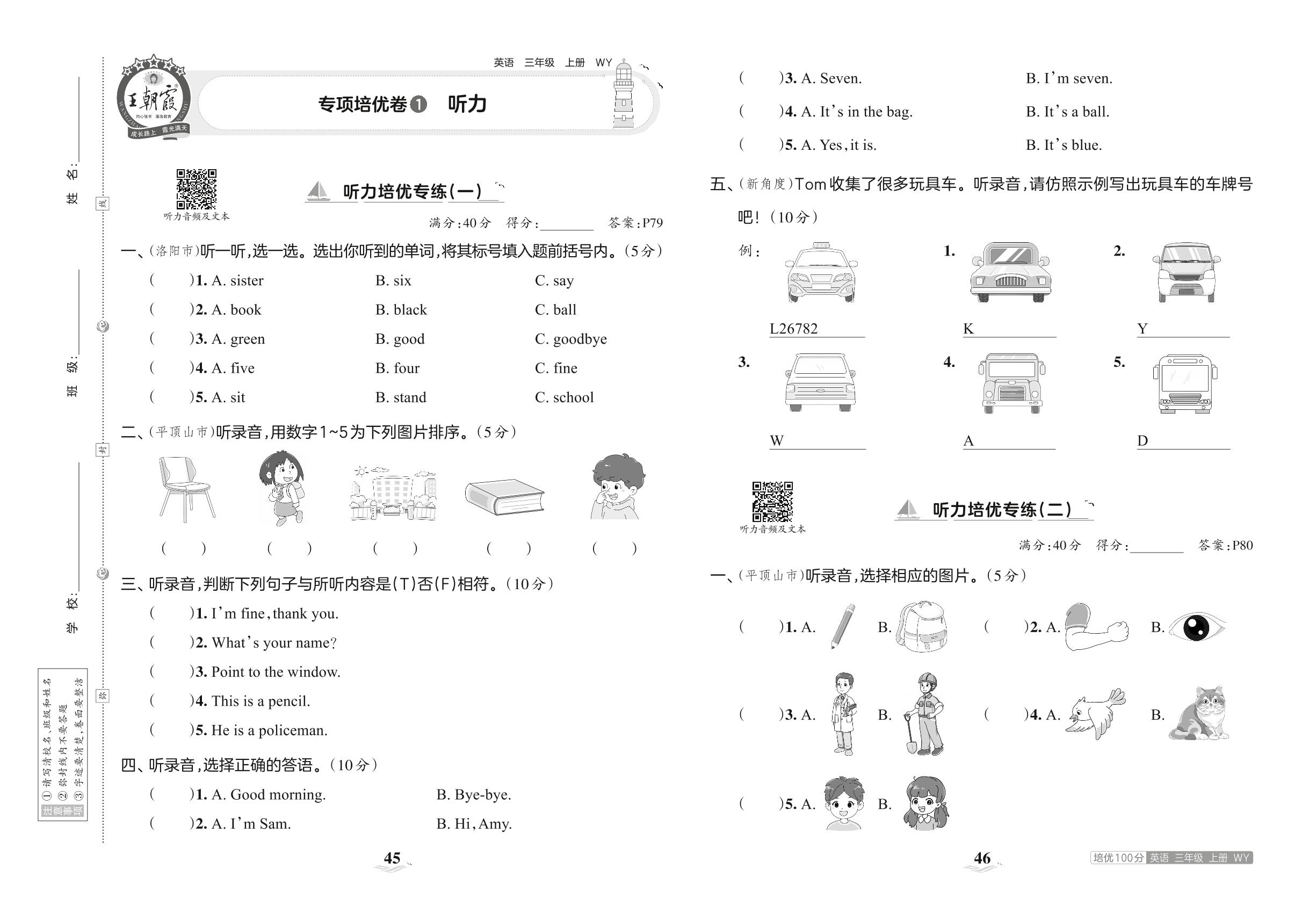 2023上册三年级英语外研版 专项培优卷 1 听力