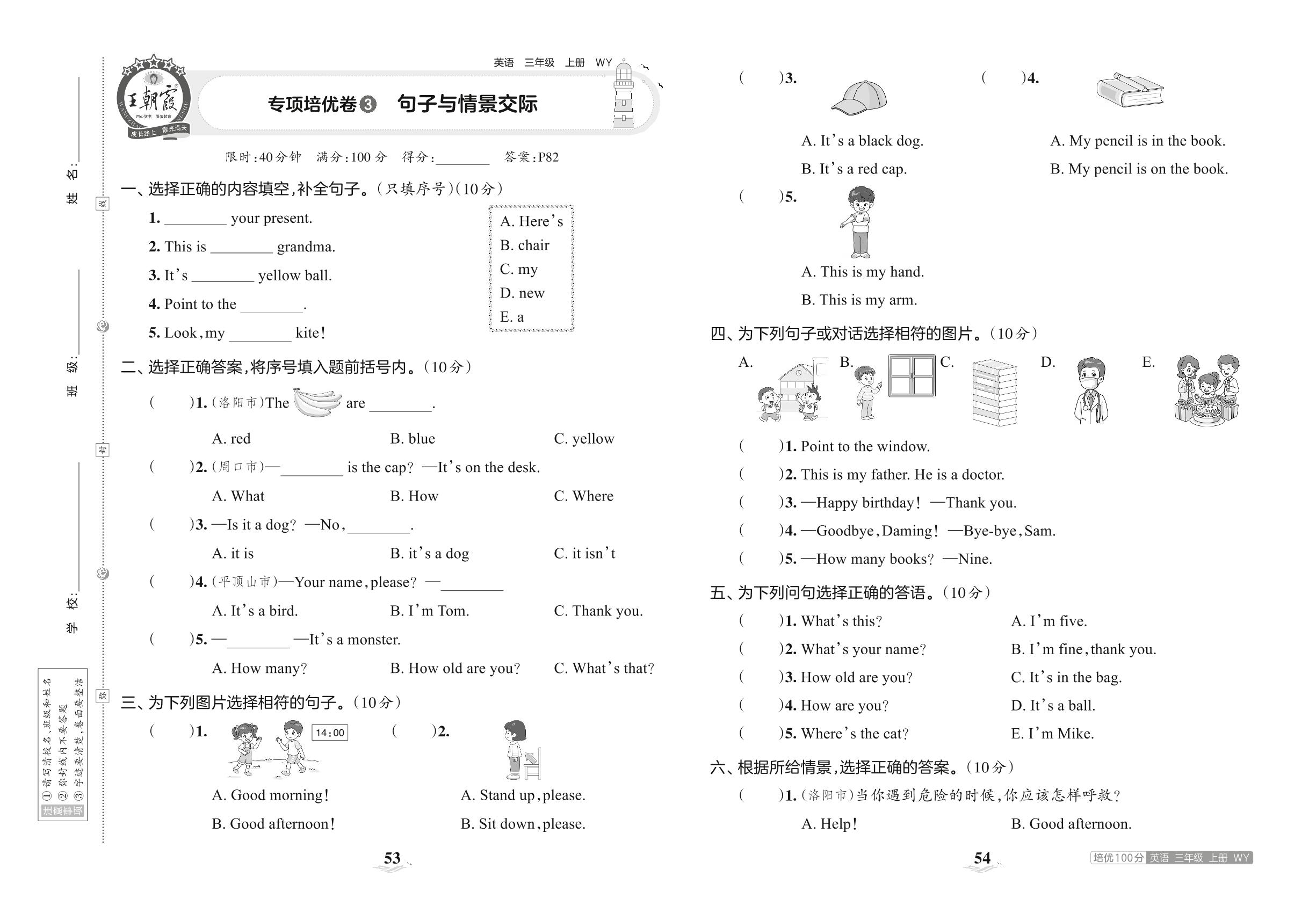 2023上册三年级英语外研版 专项培优卷 3 句子与情景交际