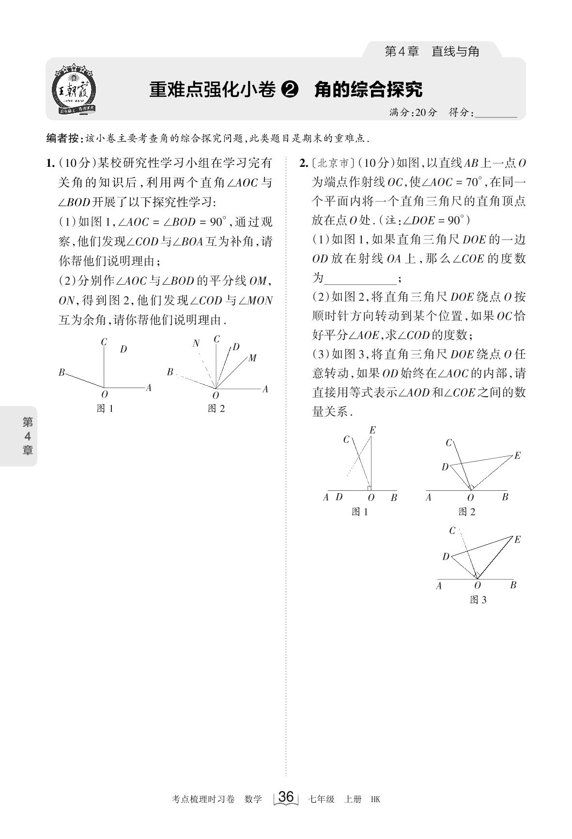 2023上册七年级数学沪科版 第4章 重难点强化小卷2 角的综合探究