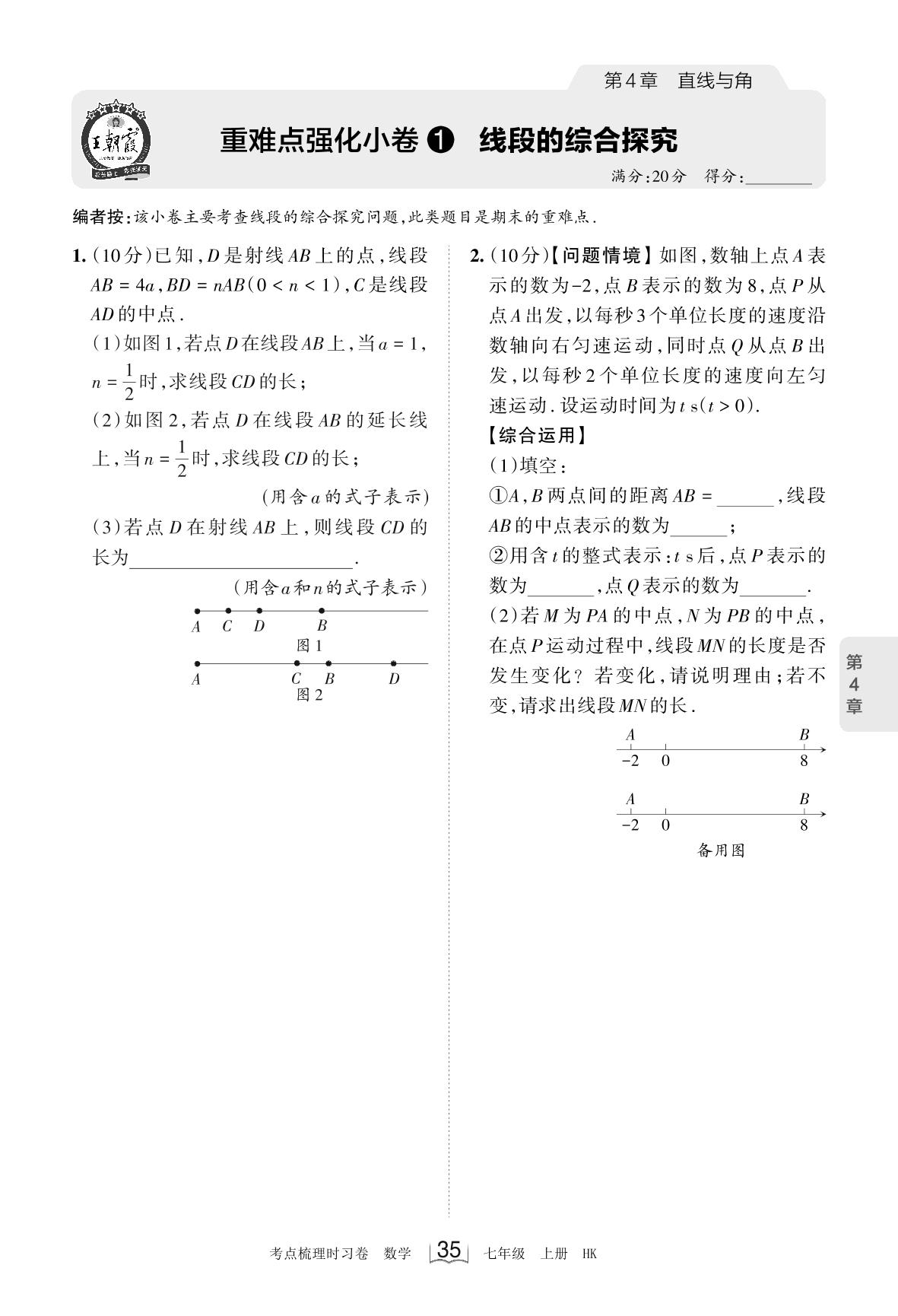 2023上册七年级数学沪科版 第4章 重难点强化小卷1 线段的综合探究