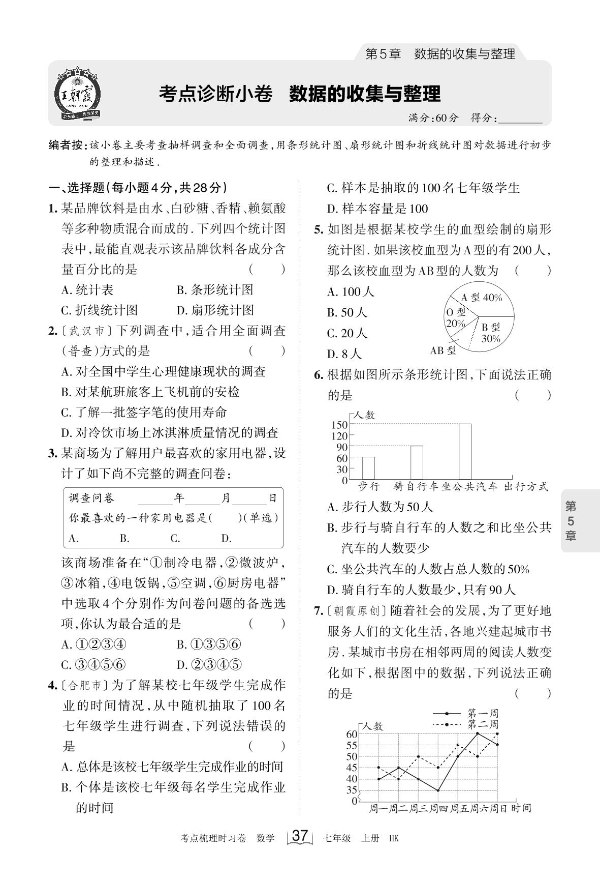 2023上册七年级数学沪科版 第5章 考点诊断小卷 数据的收集与整理