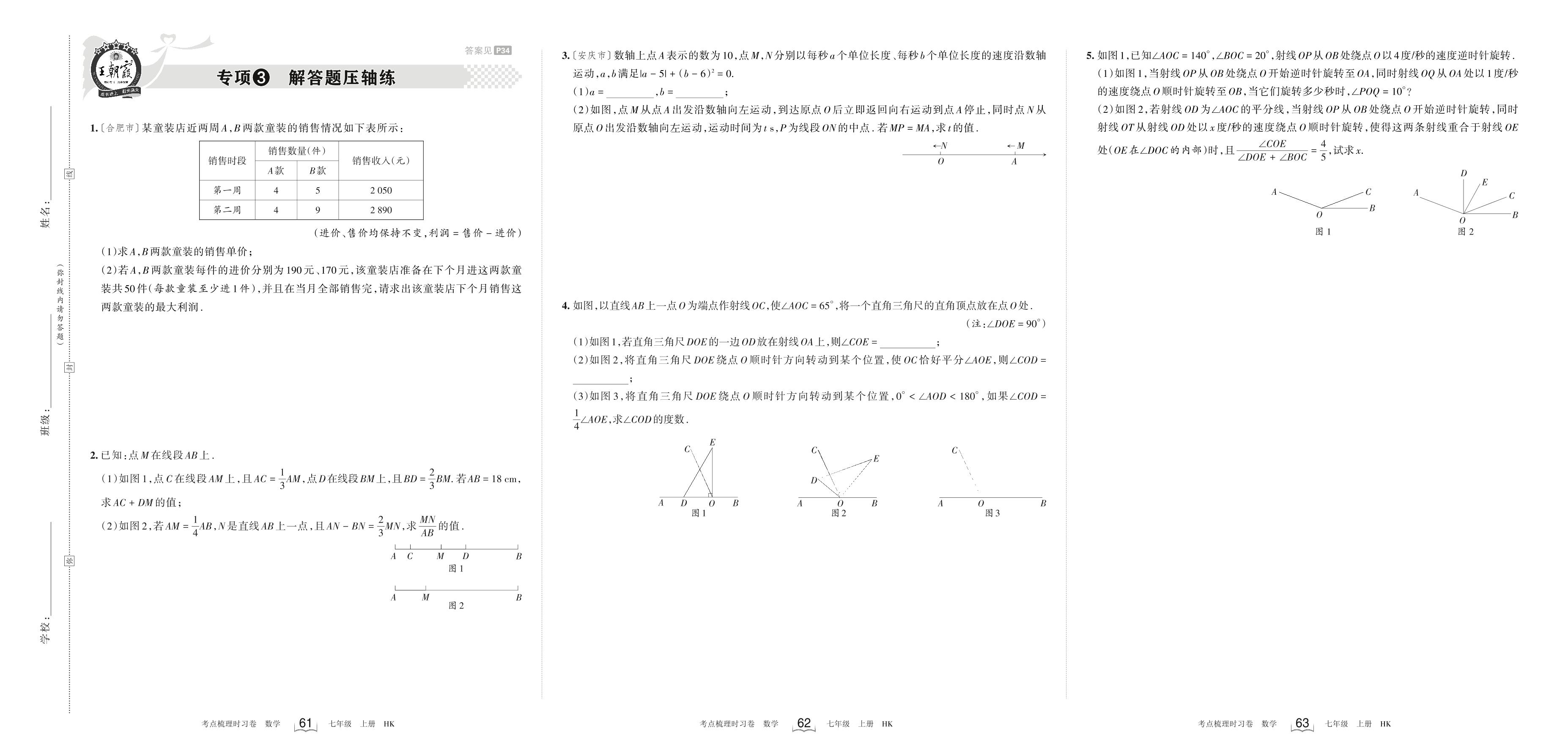 2023上册七年级数学沪科版 专项3 解答题压轴练