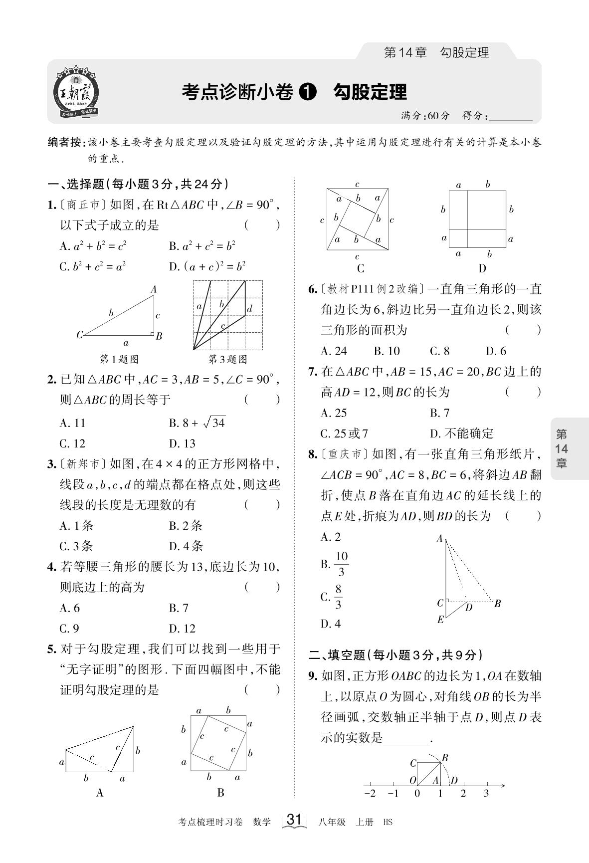 2023上册八年级数学华师版 第14章 考点诊断小卷1 勾股定理