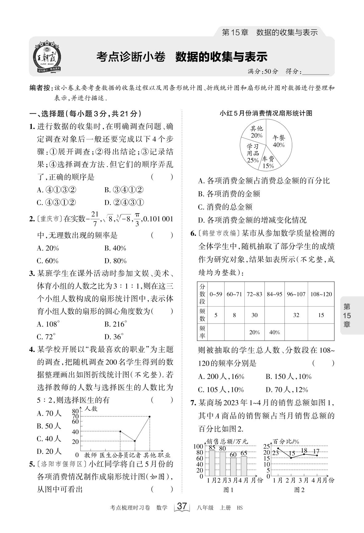 2023上册八年级数学华师版 第15章 考点诊断小卷 数据的收集与表示