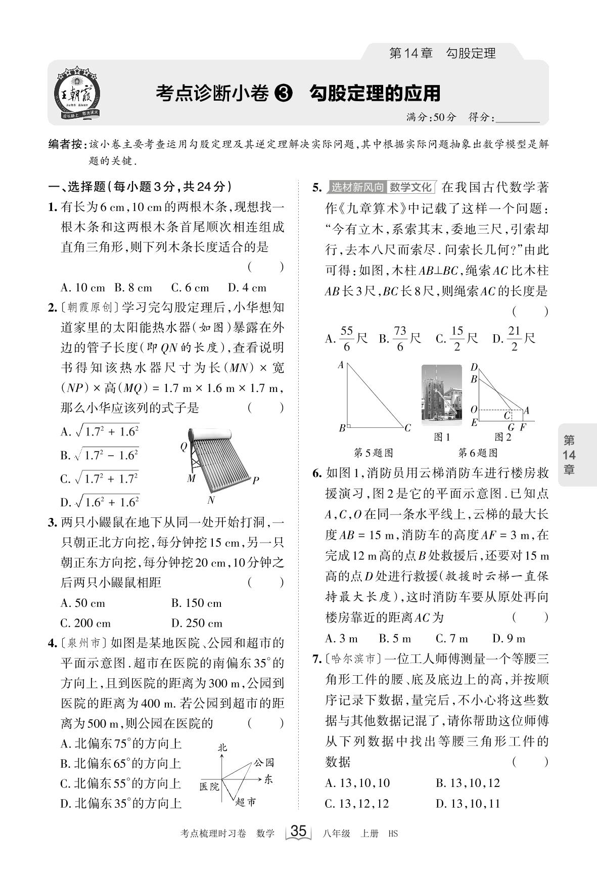 2023上册八年级数学华师版 第14章 考点诊断小卷3 勾股定理的应用
