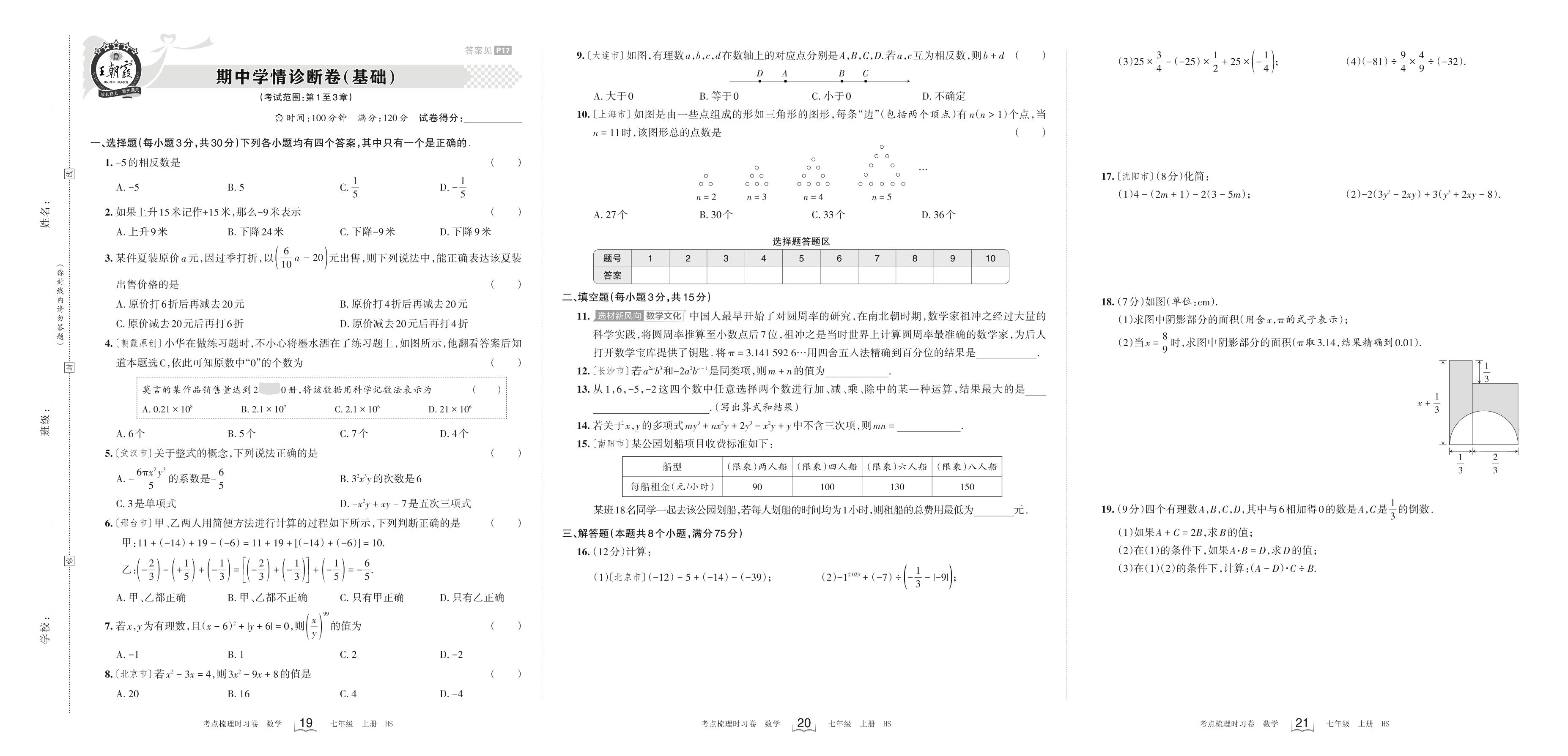 2023上册七年级数学华师版 期中学情诊断卷(基础)