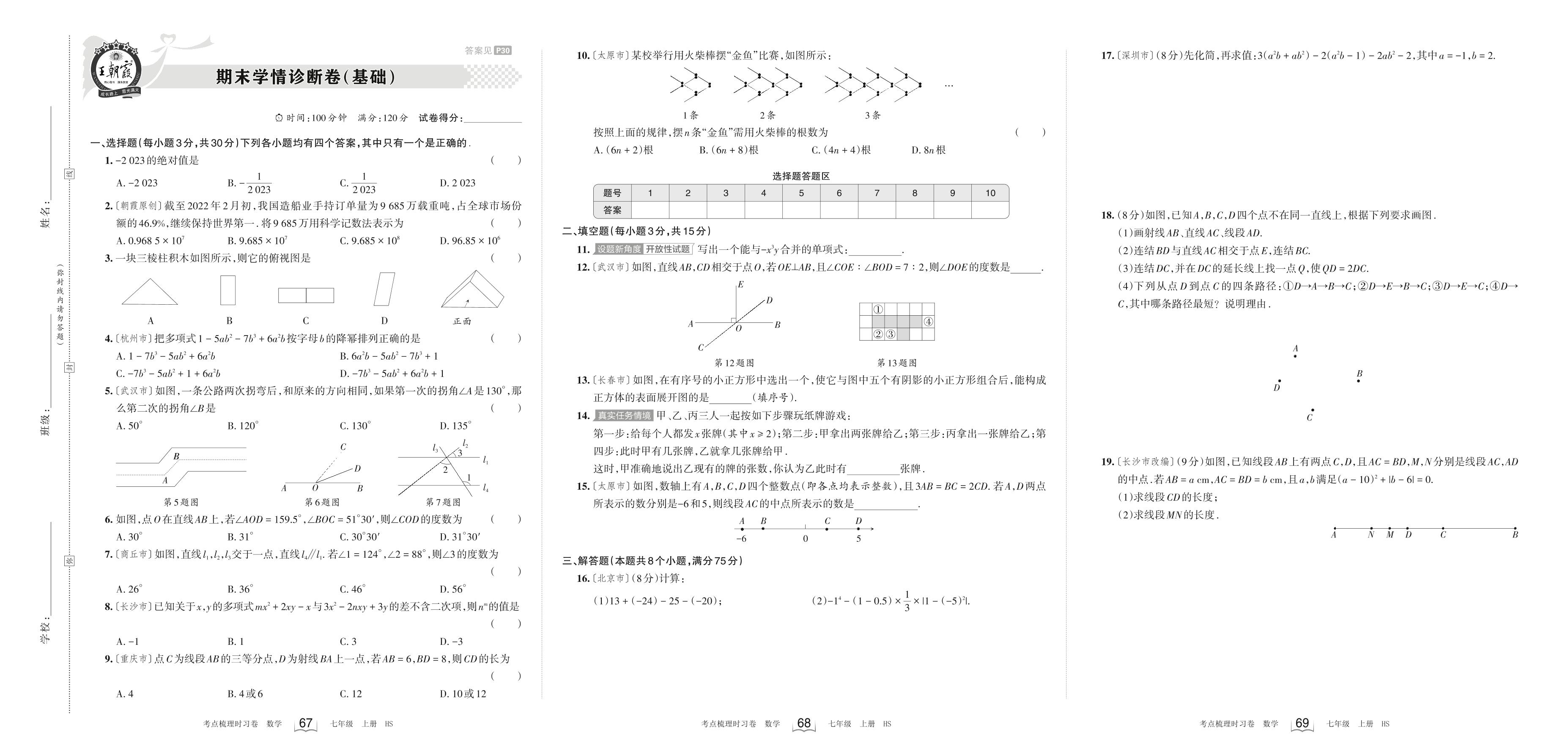 2023上册七年级数学华师版 期末学情诊断卷(基础)