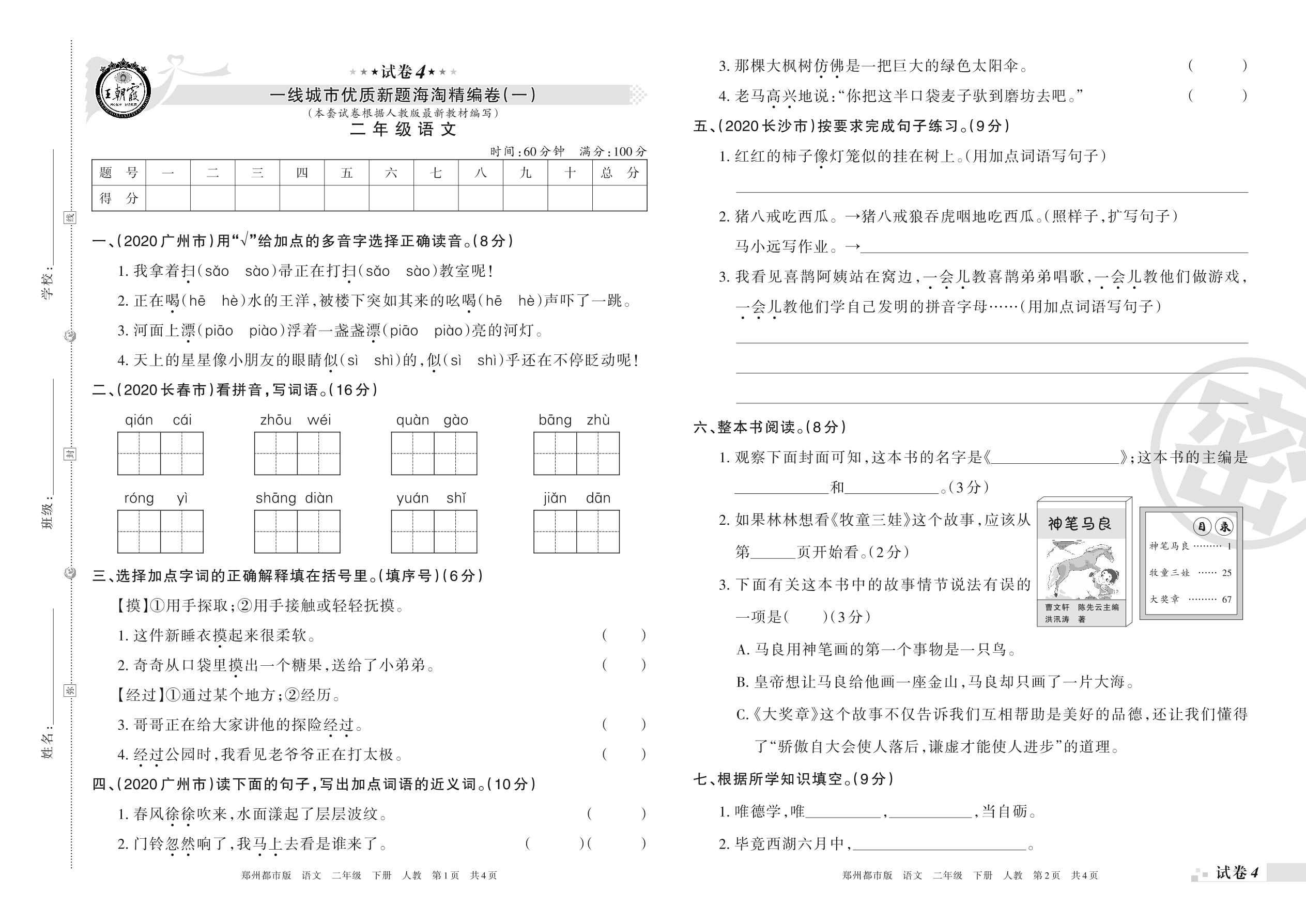 王朝霞海淘期末精编卷二年级下册语文(人教版)_R21080163020【4】