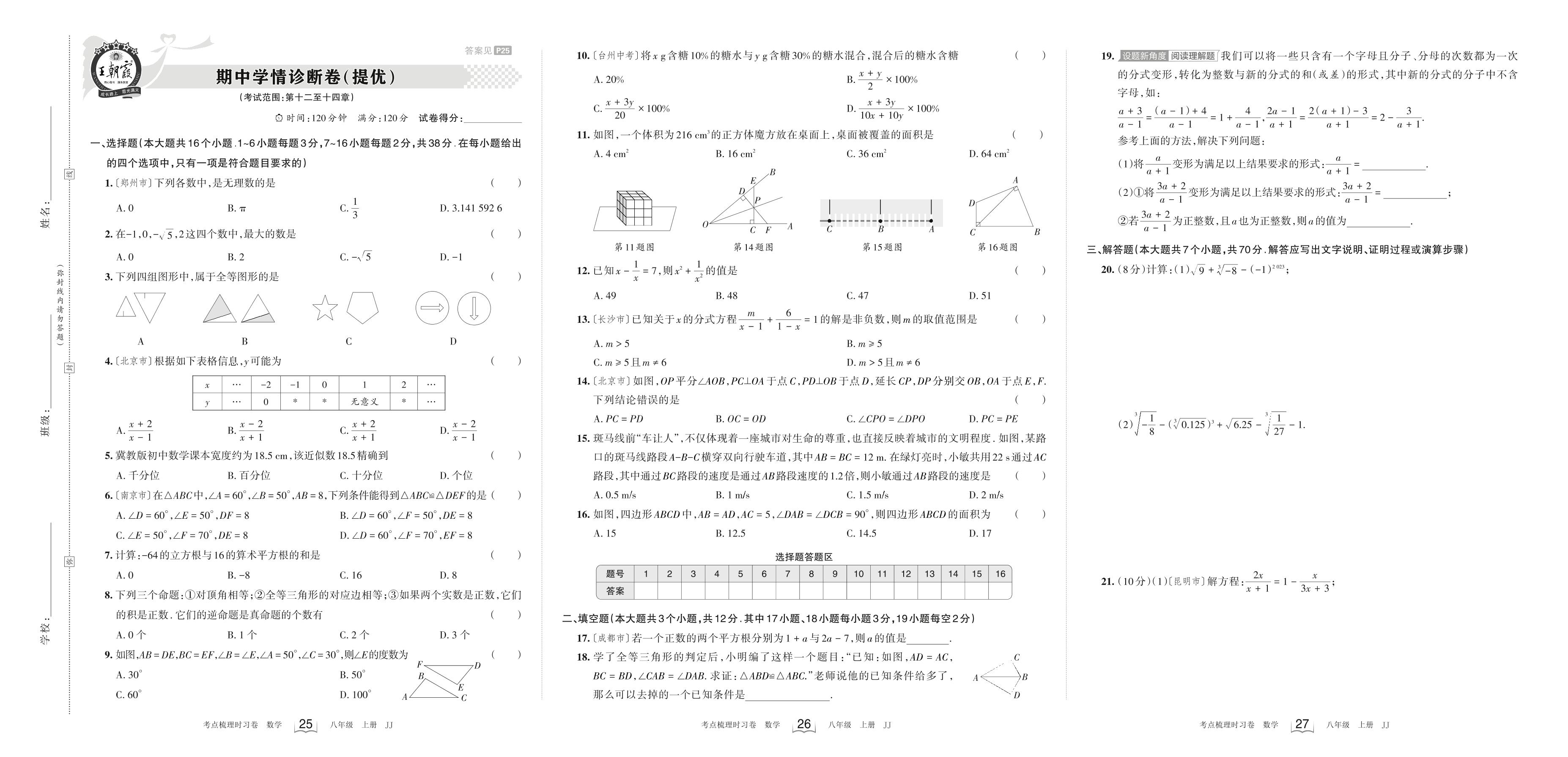 2023上册八年级数学冀教版 期中学情诊断卷(提优)