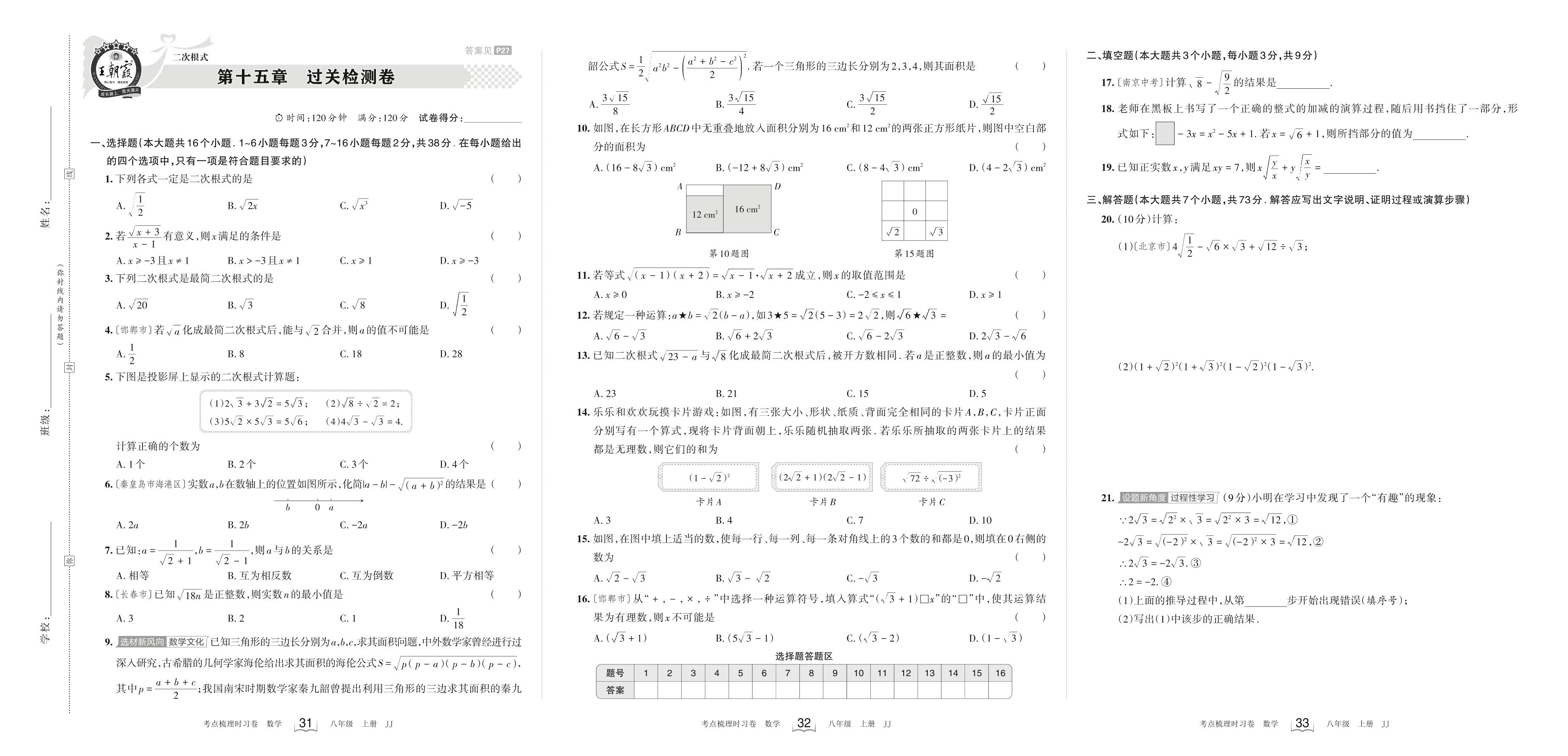 2023上册八年级数学冀教版 第十五章 过关检测卷