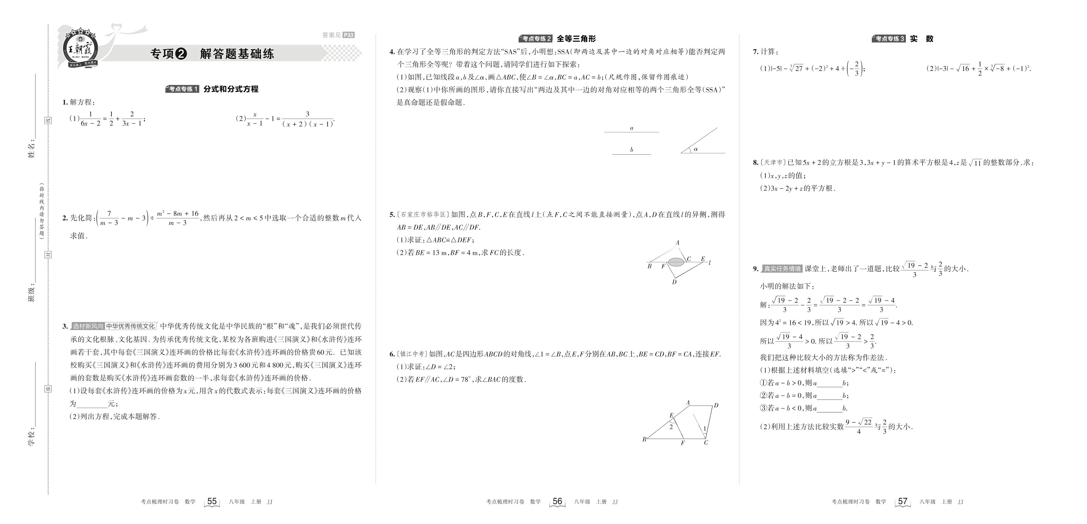 2023上册八年级数学冀教版 专项2 解答题基础练