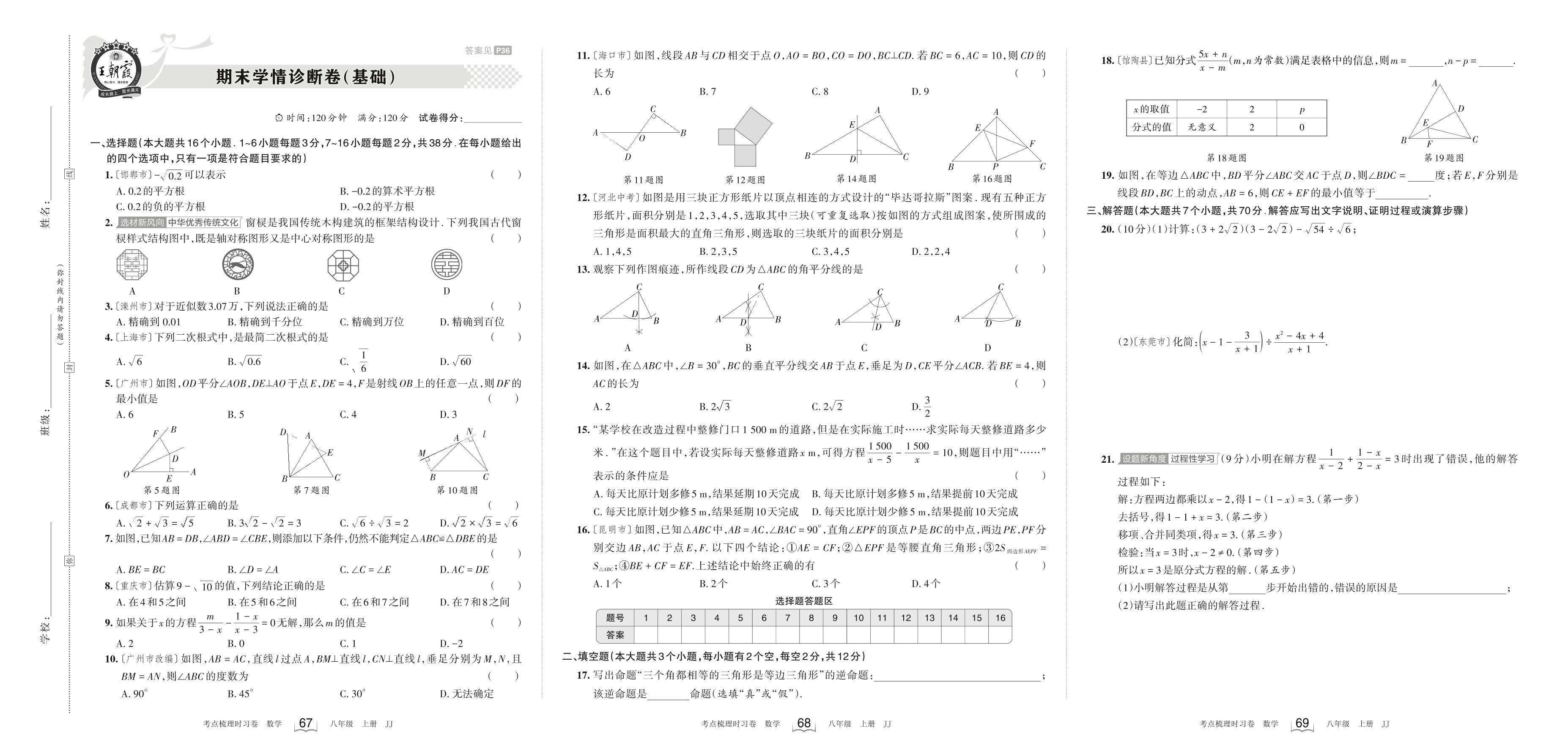 2023上册八年级数学冀教版 期末学情诊断卷(基础)
