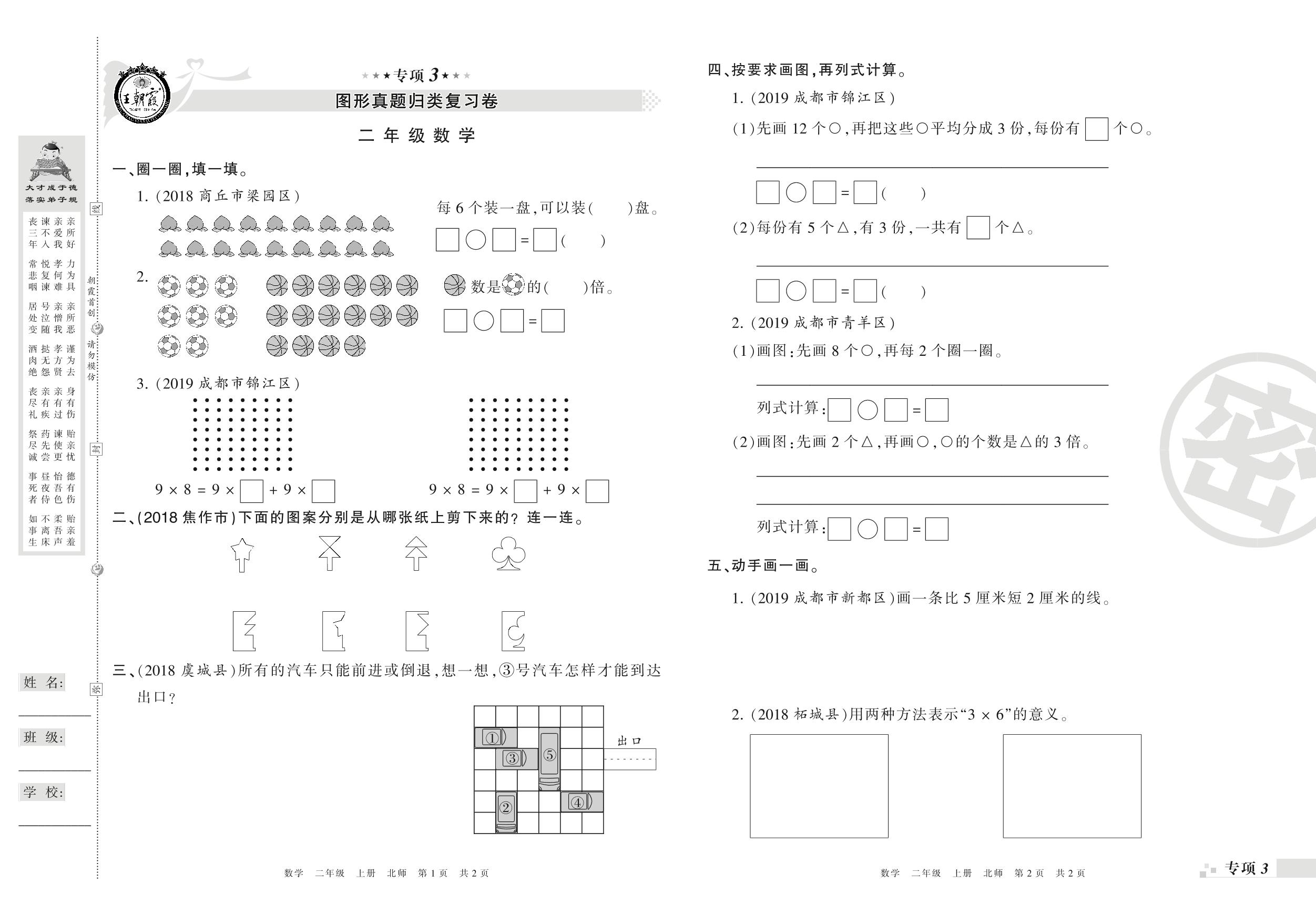 王朝霞期末专项卷——图形、解决问题真题归类复习二年级上册数学(北师版)_R21080392835【0】