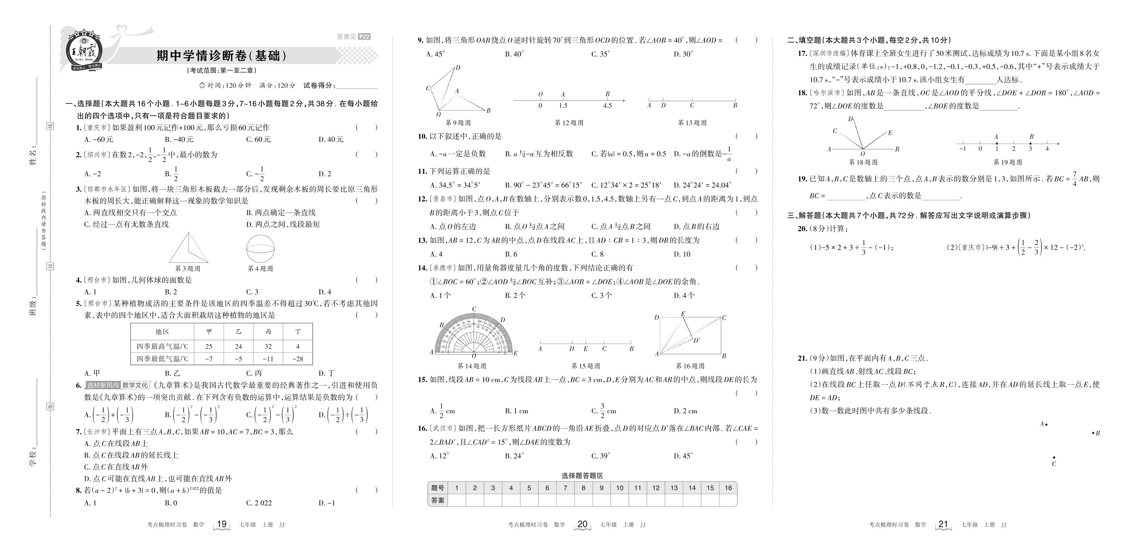 2023上册七年级数学冀教版 期中学情诊断卷(基础)