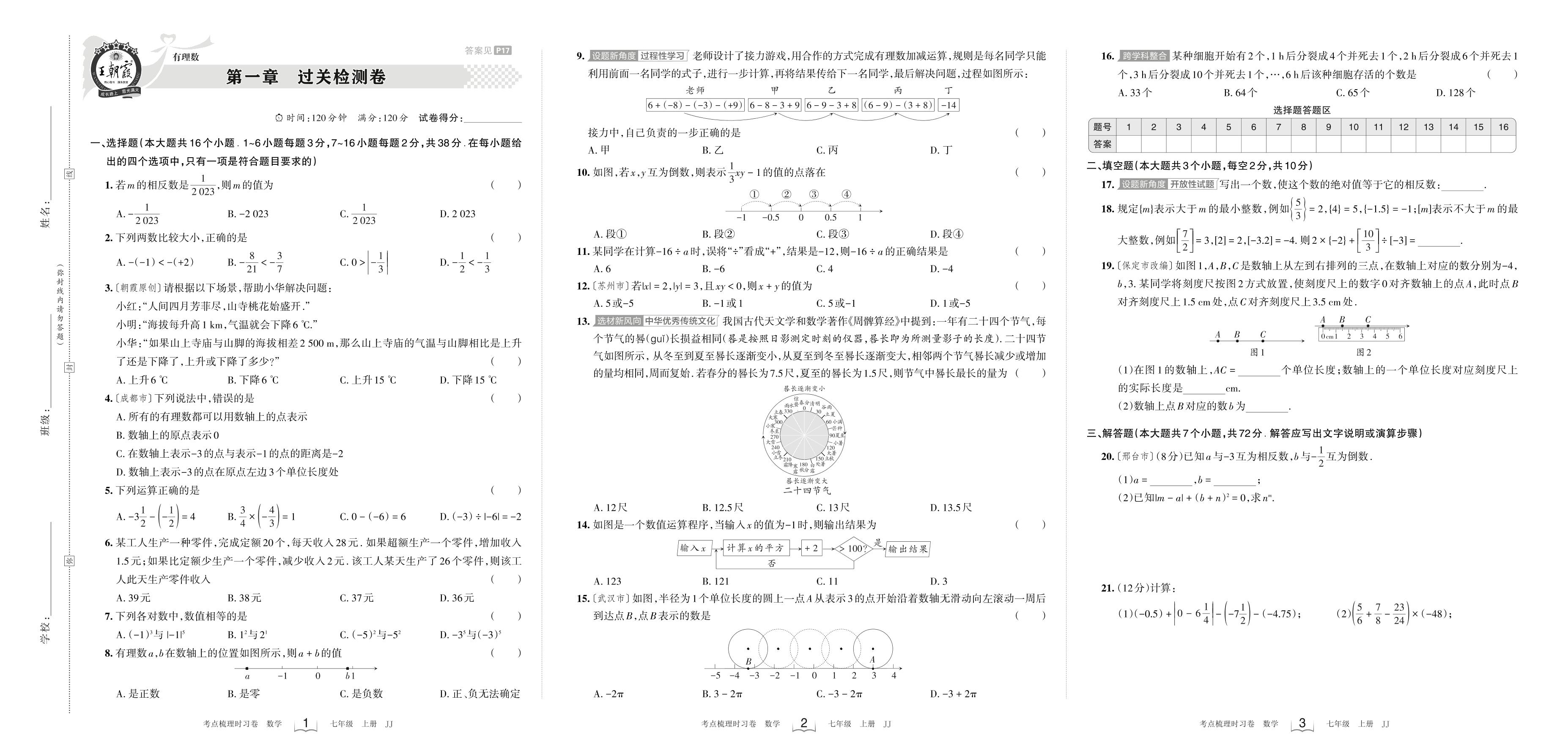 2023上册七年级数学冀教版 第一章 过关检测卷