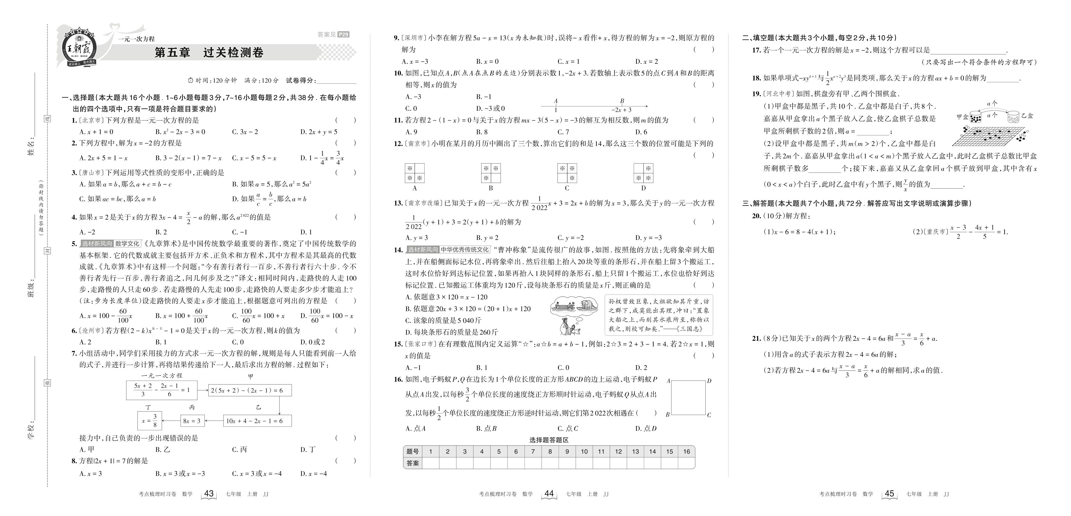 2023上册七年级数学冀教版 第五章 过关检测卷