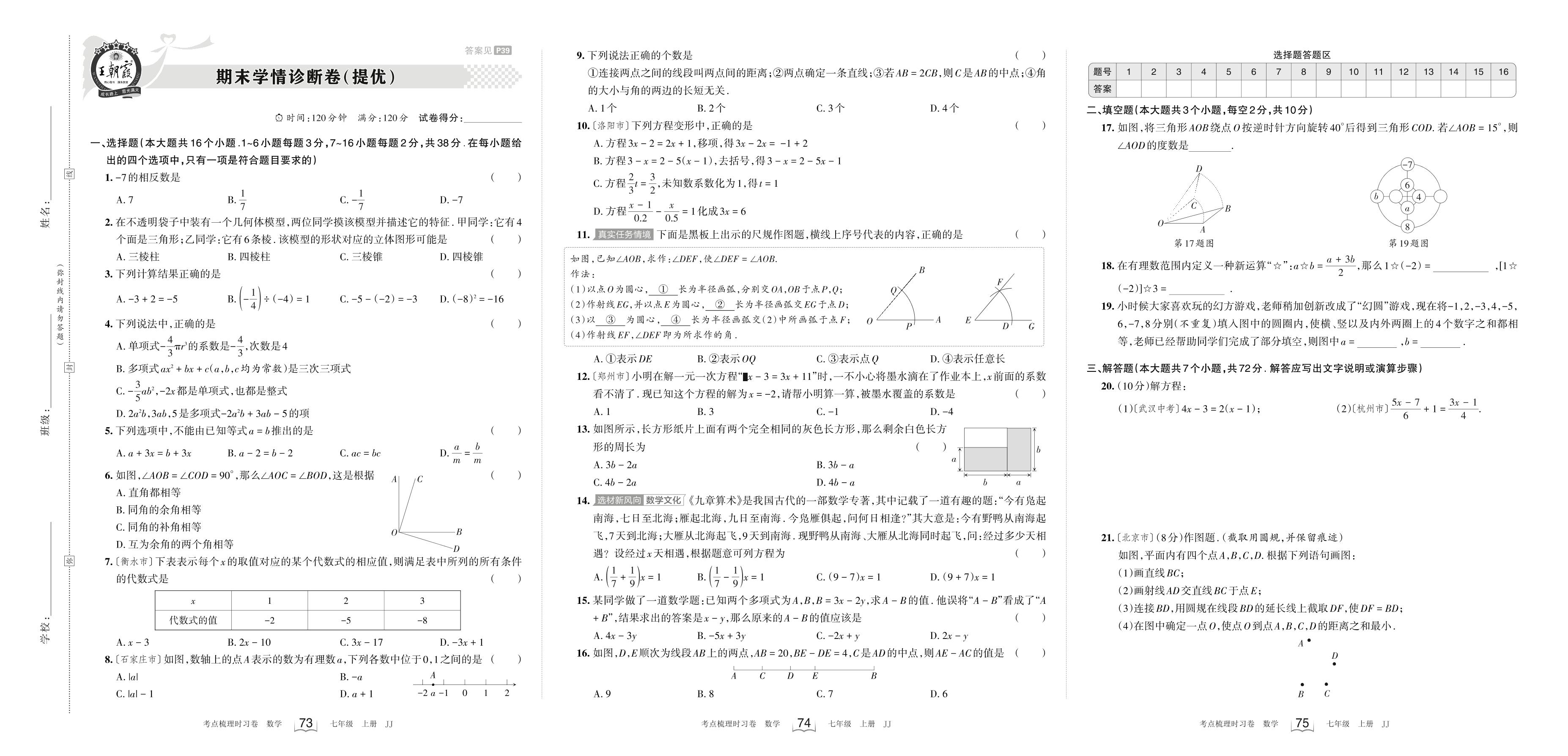 2023上册七年级数学冀教版 期末学情诊断卷(提优)