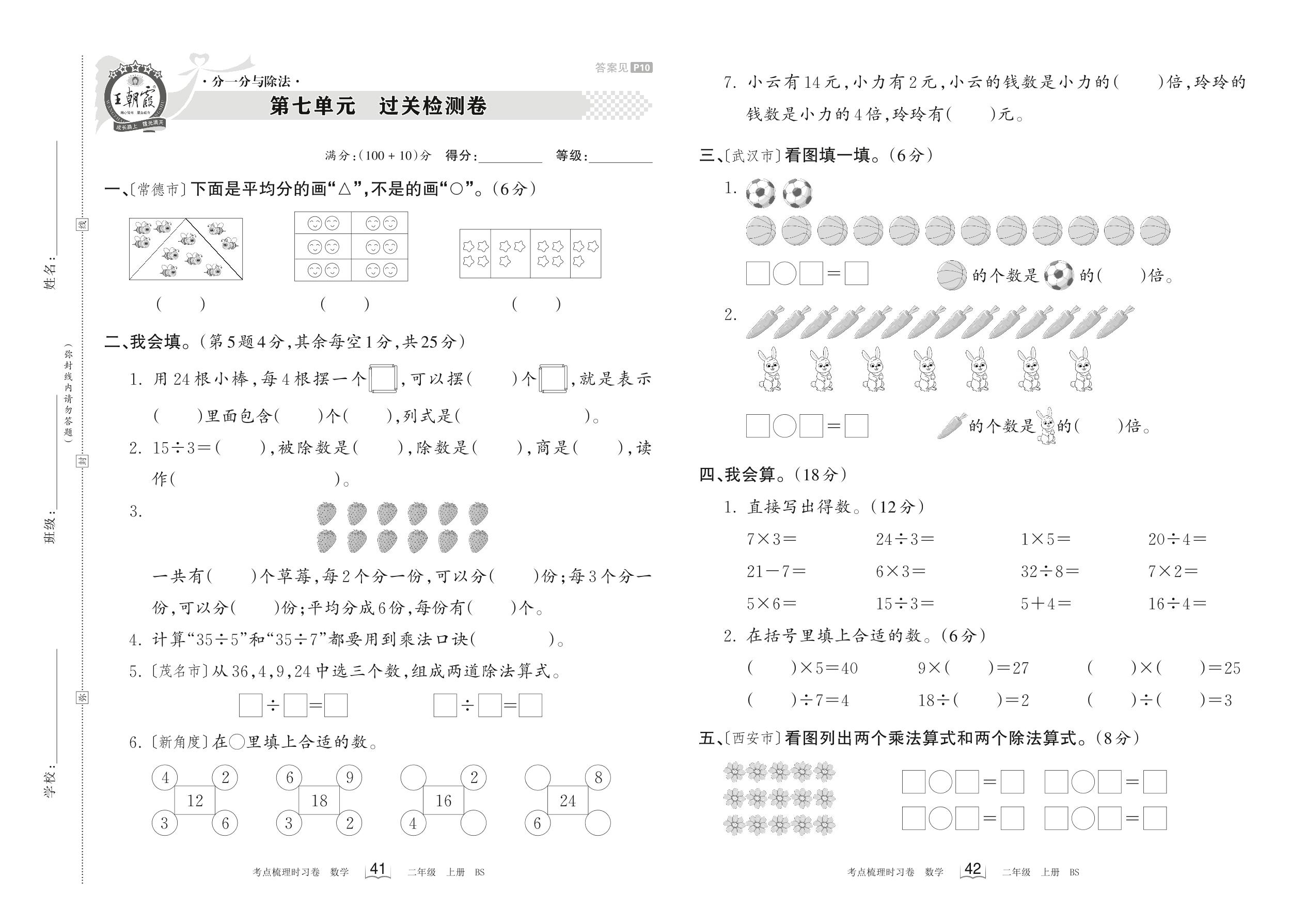 2023上册二年级数学北师版 第七单元 过关检测卷