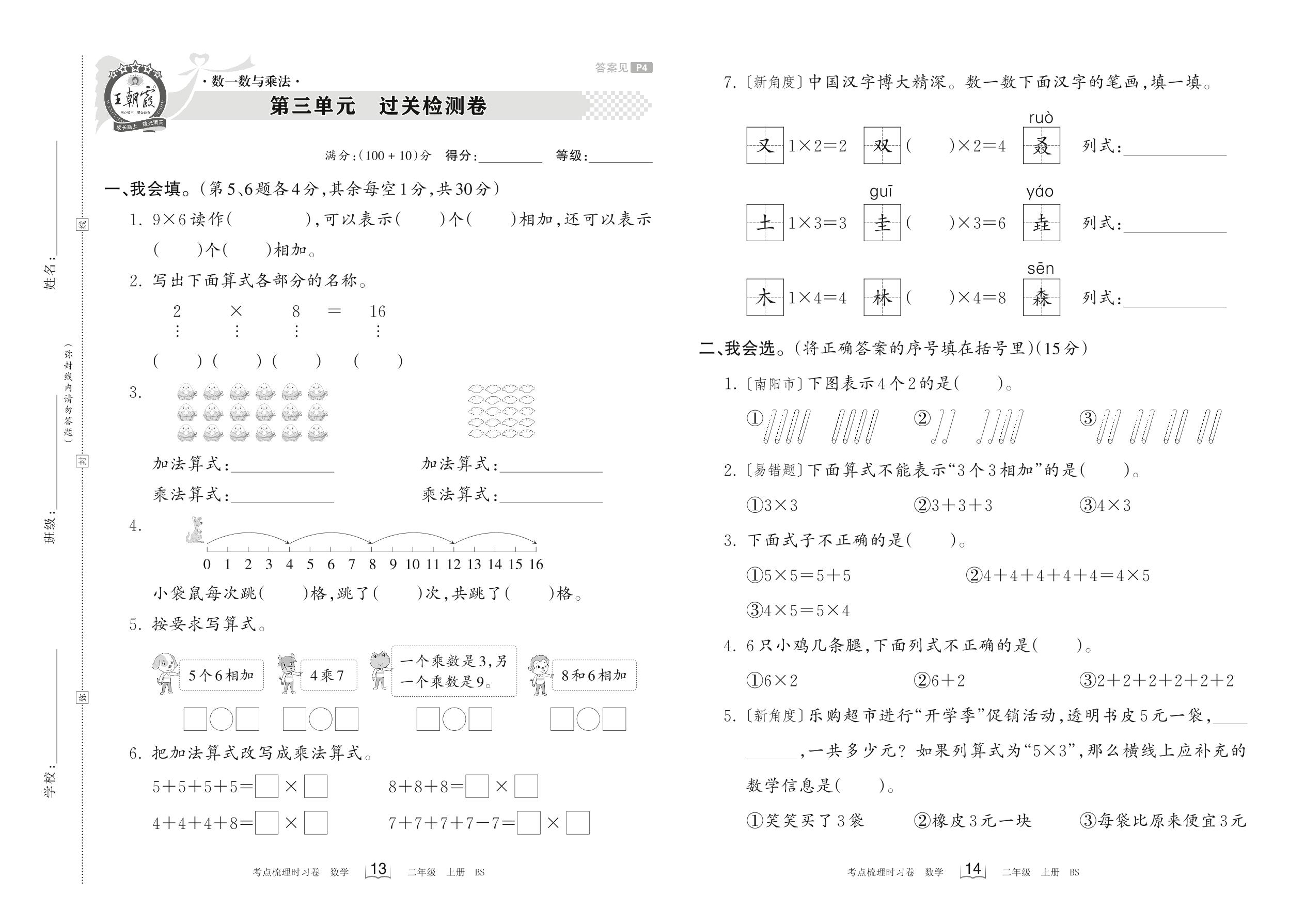 2023上册二年级数学北师版 第三单元 过关检测卷