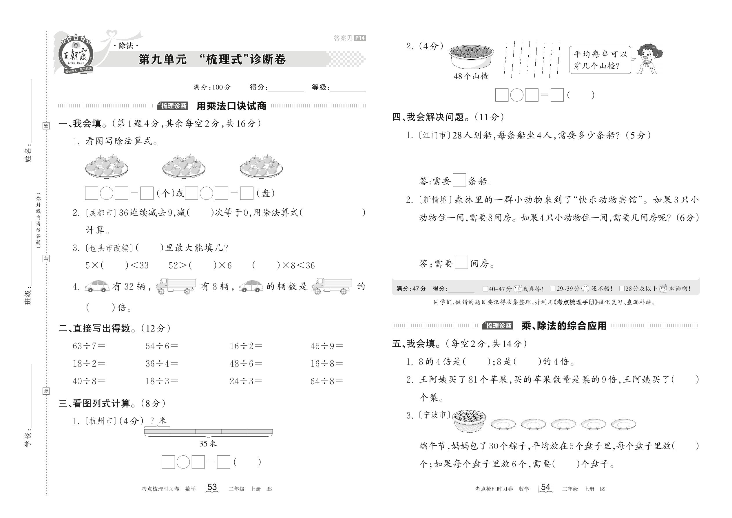 2023上册二年级数学北师版 第九单元 “梳理式”诊断卷