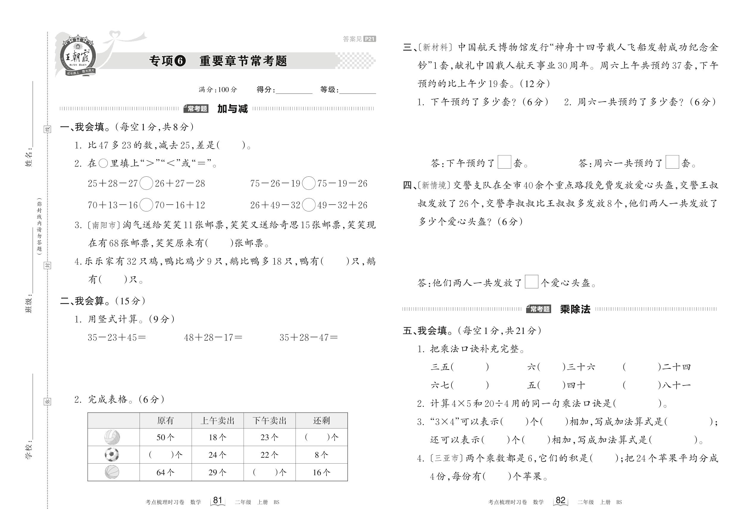 2023上册二年级数学北师版 专项6 重要章节常考题