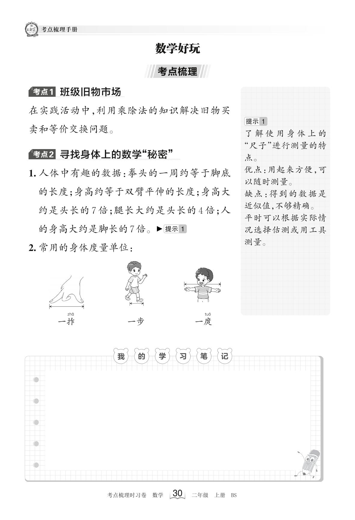 2023上册二年级数学北师版 考点梳理手册——数学好玩