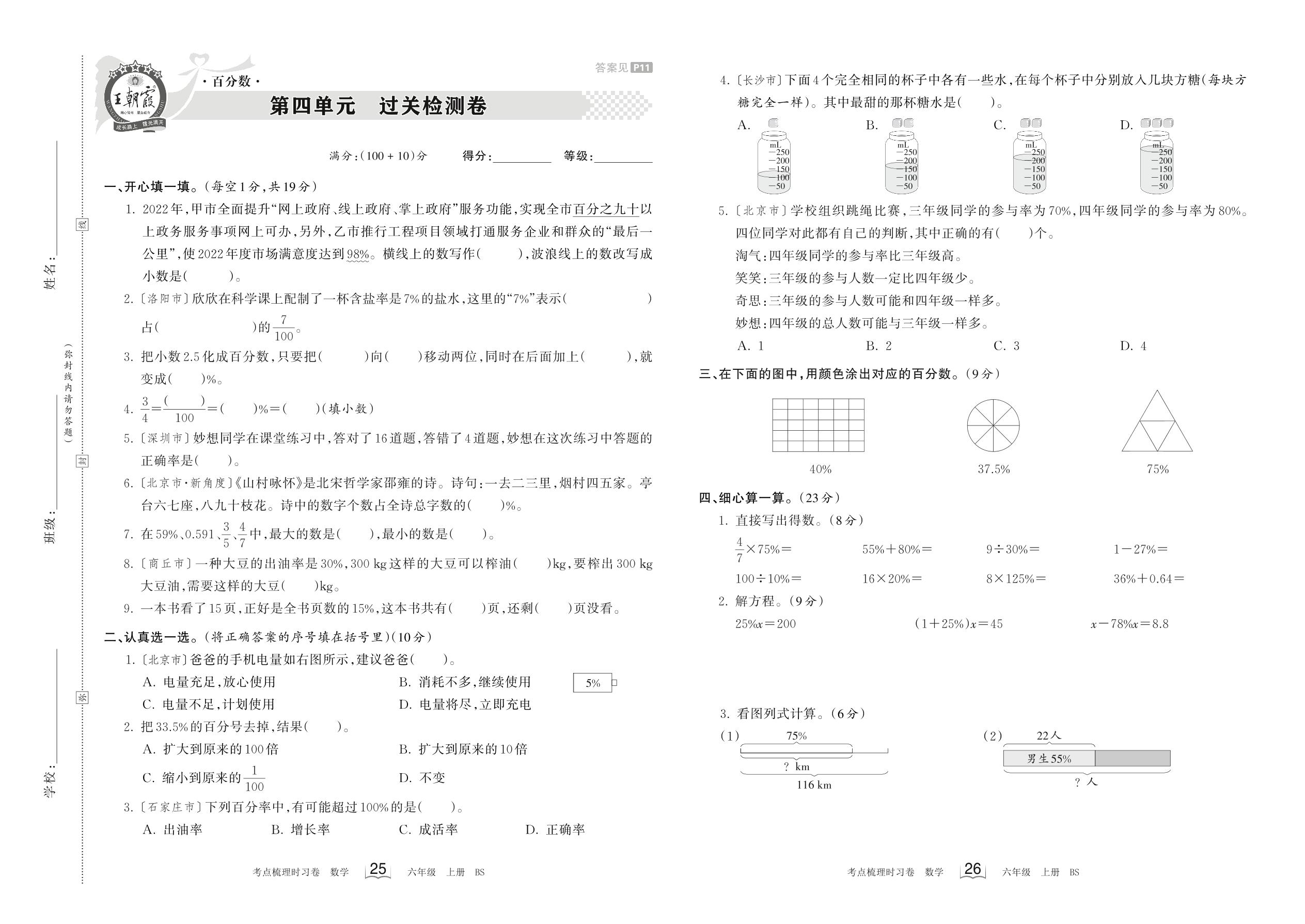 2023上册六年级数学北师版 第四单元 过关检测卷