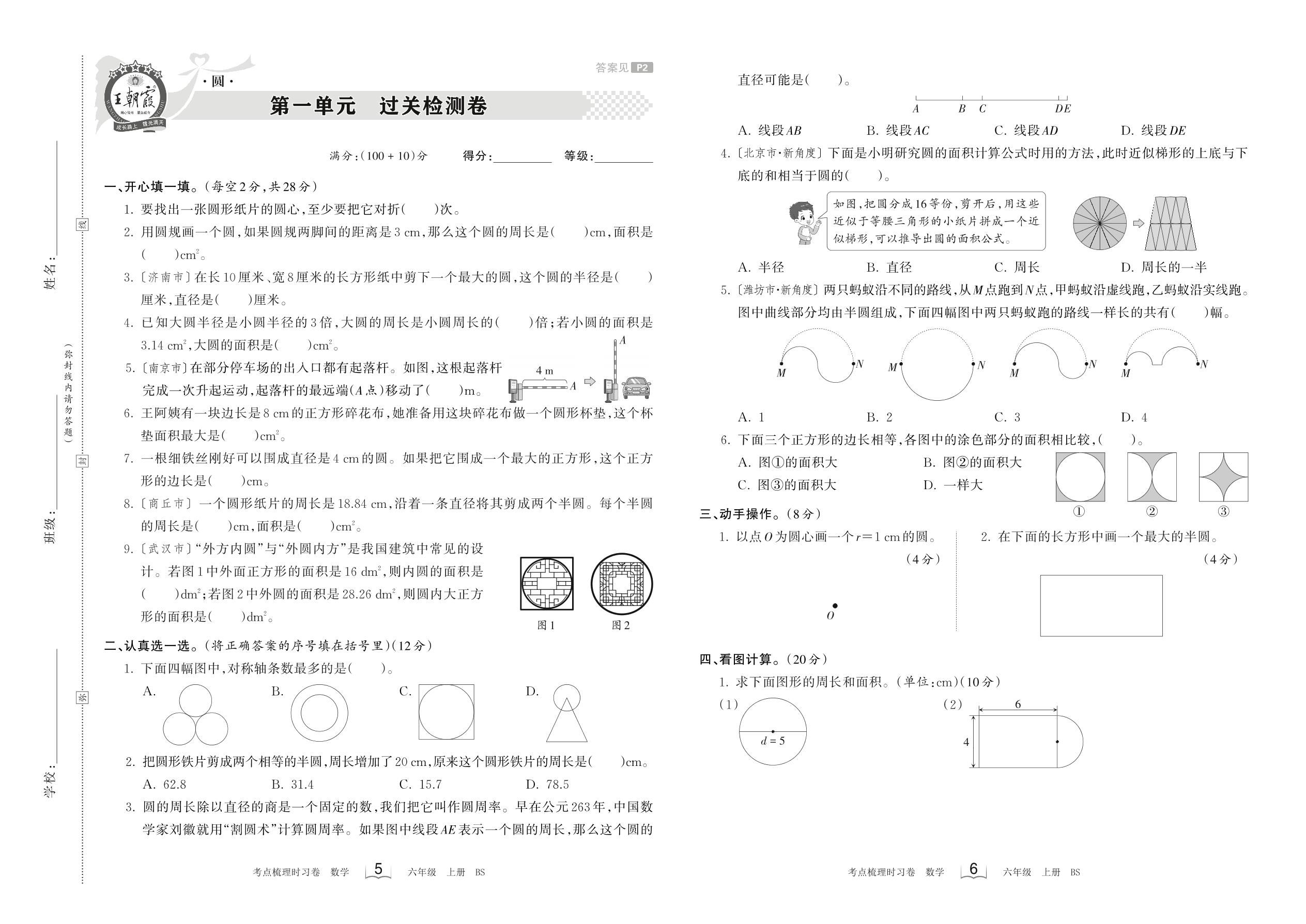 六年级数学北师版上册单元卷