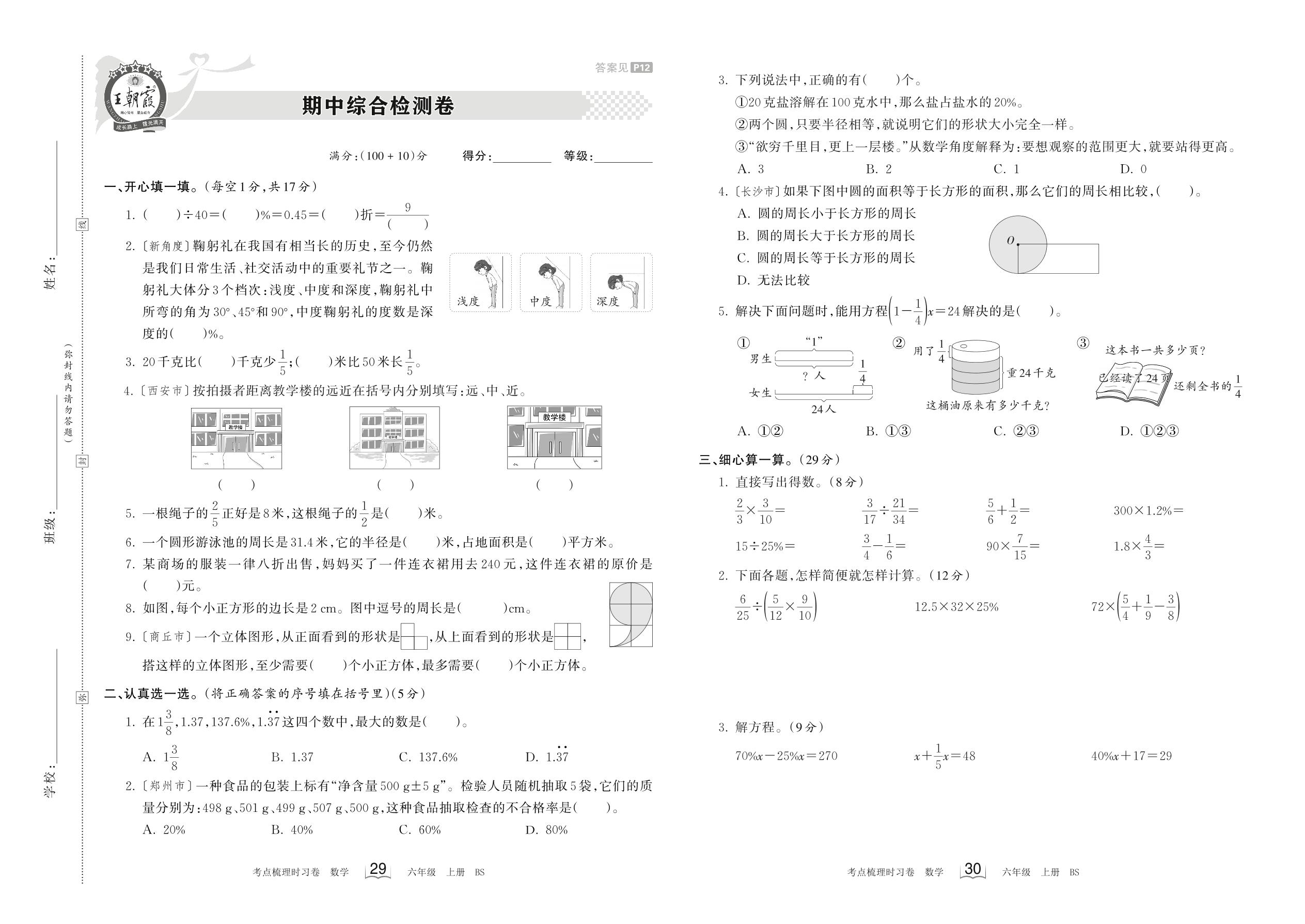 六年级数学北师版上册期中卷