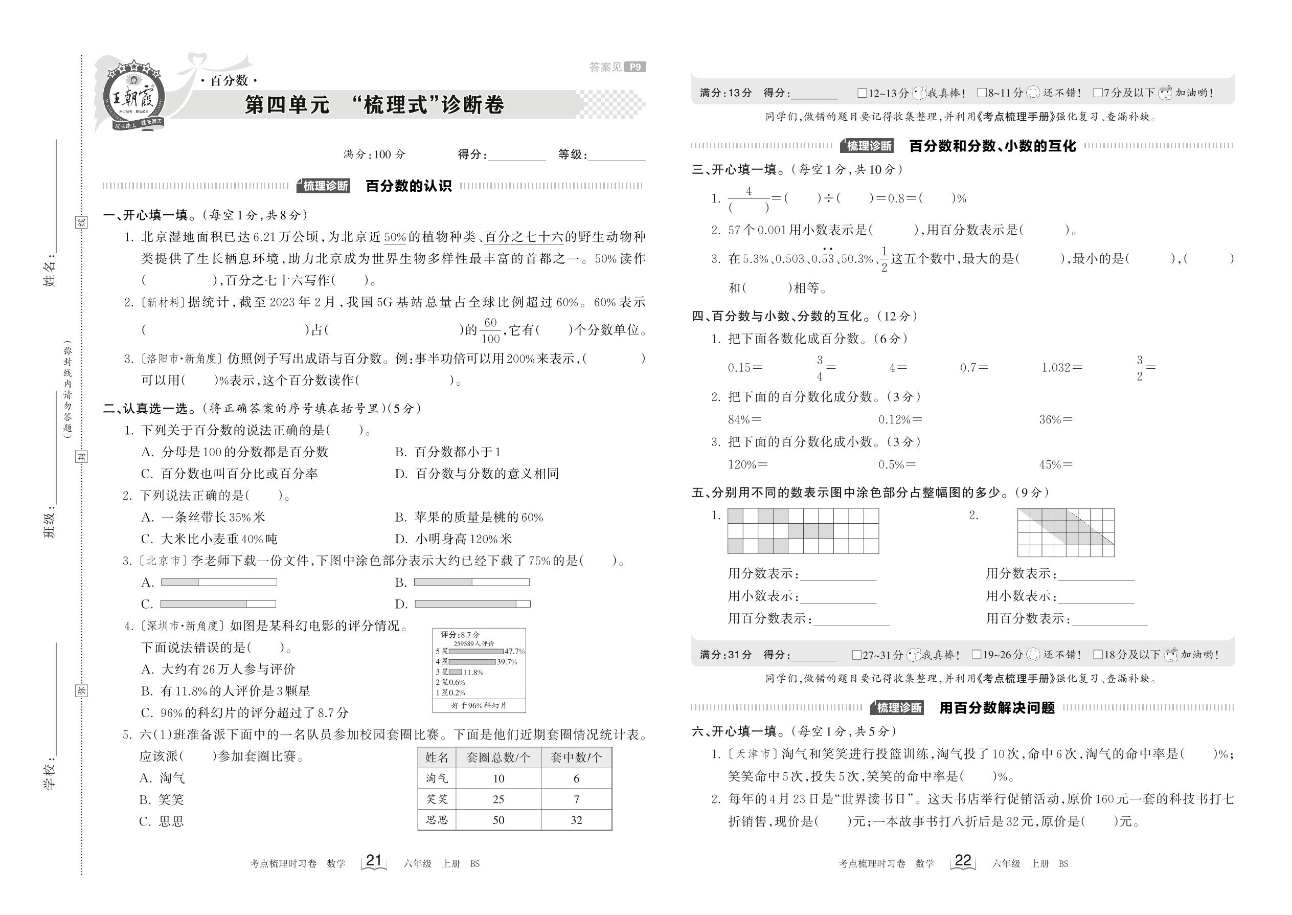 2023上册六年级数学北师版 第四单元 “梳理式”诊断卷