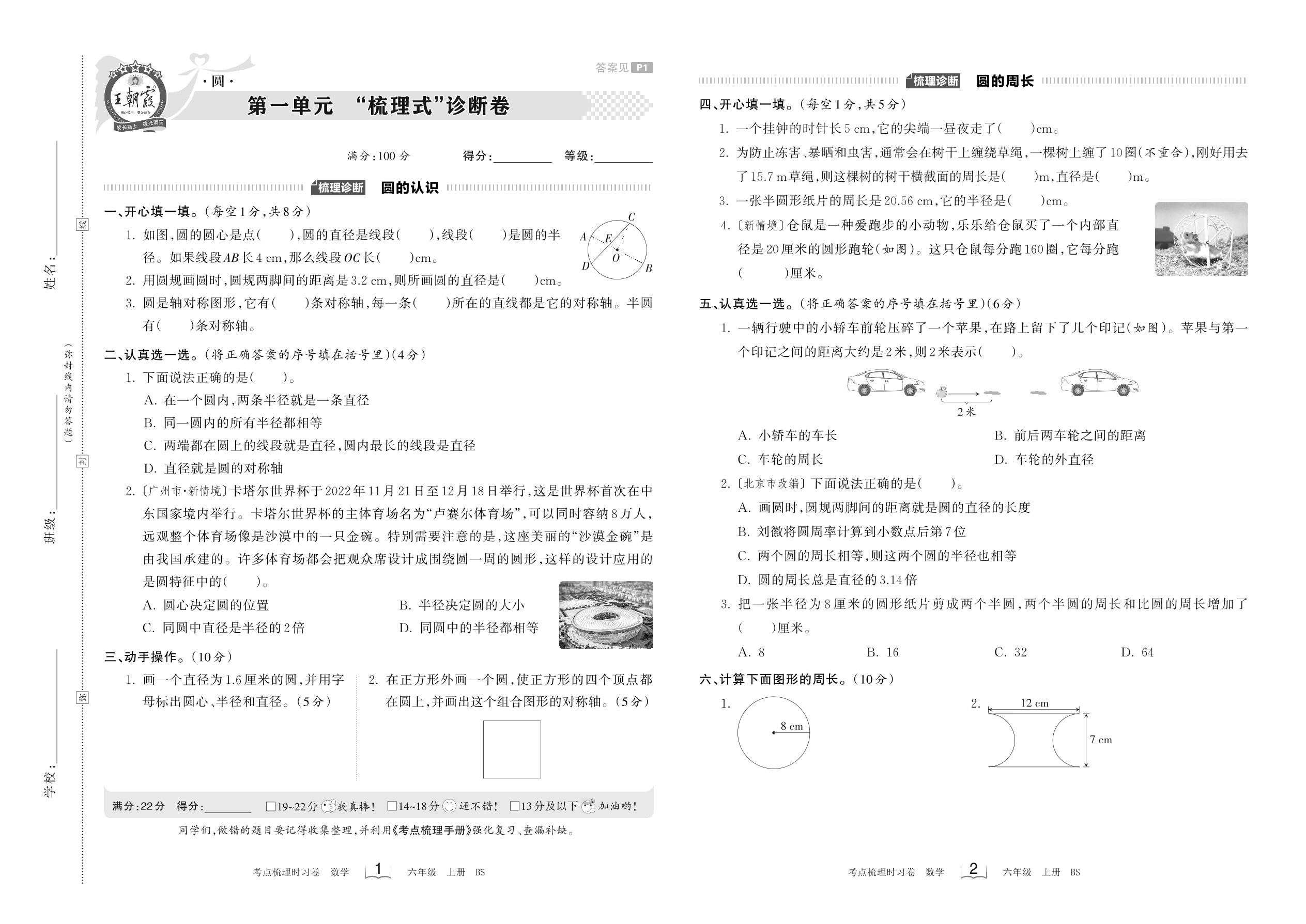 2023上册六年级数学北师版 第一单元 “梳理式”诊断卷